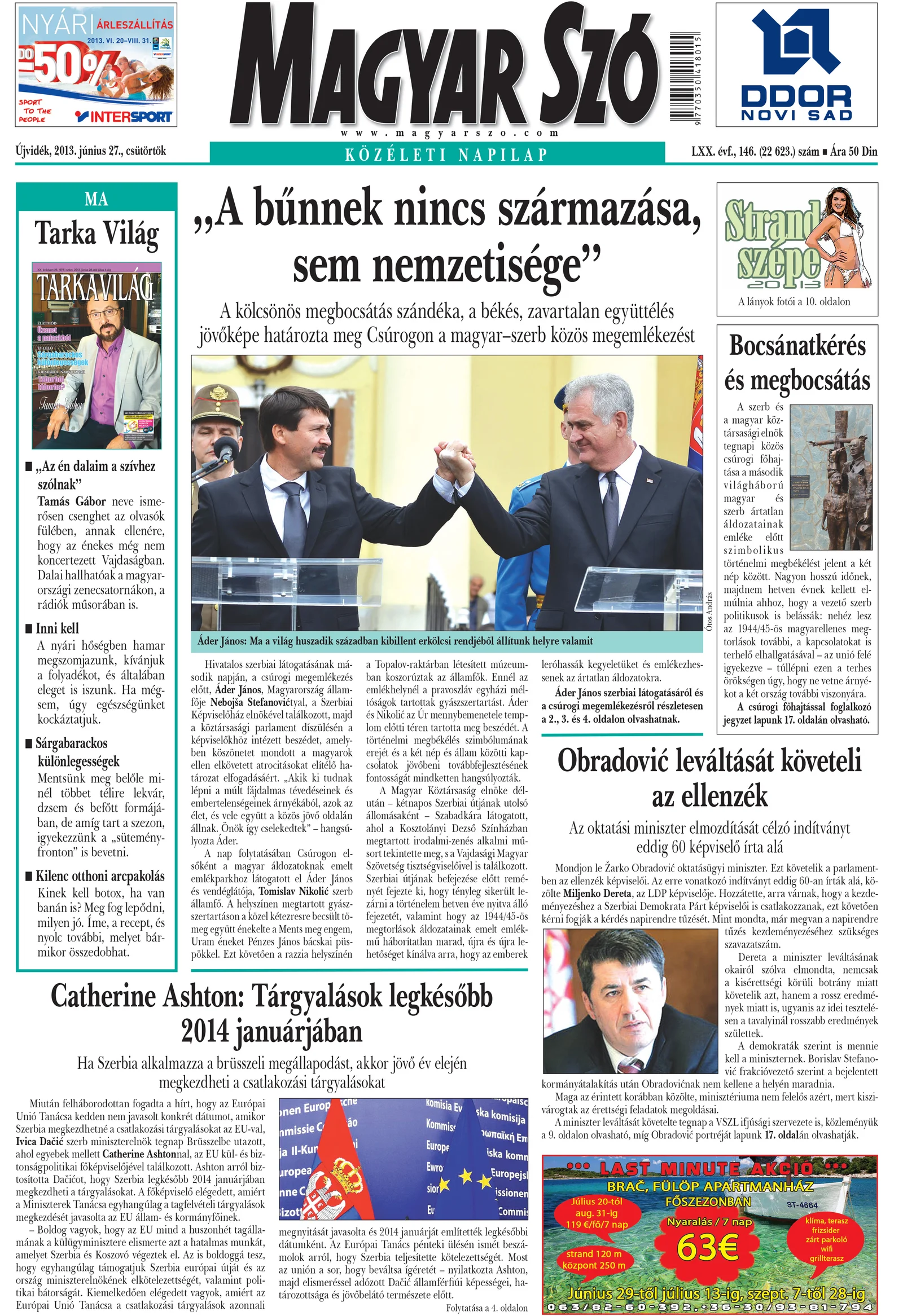 Magyar Szó, 70. évf. 2013. június 27. 146. sz. 1–20. oldal