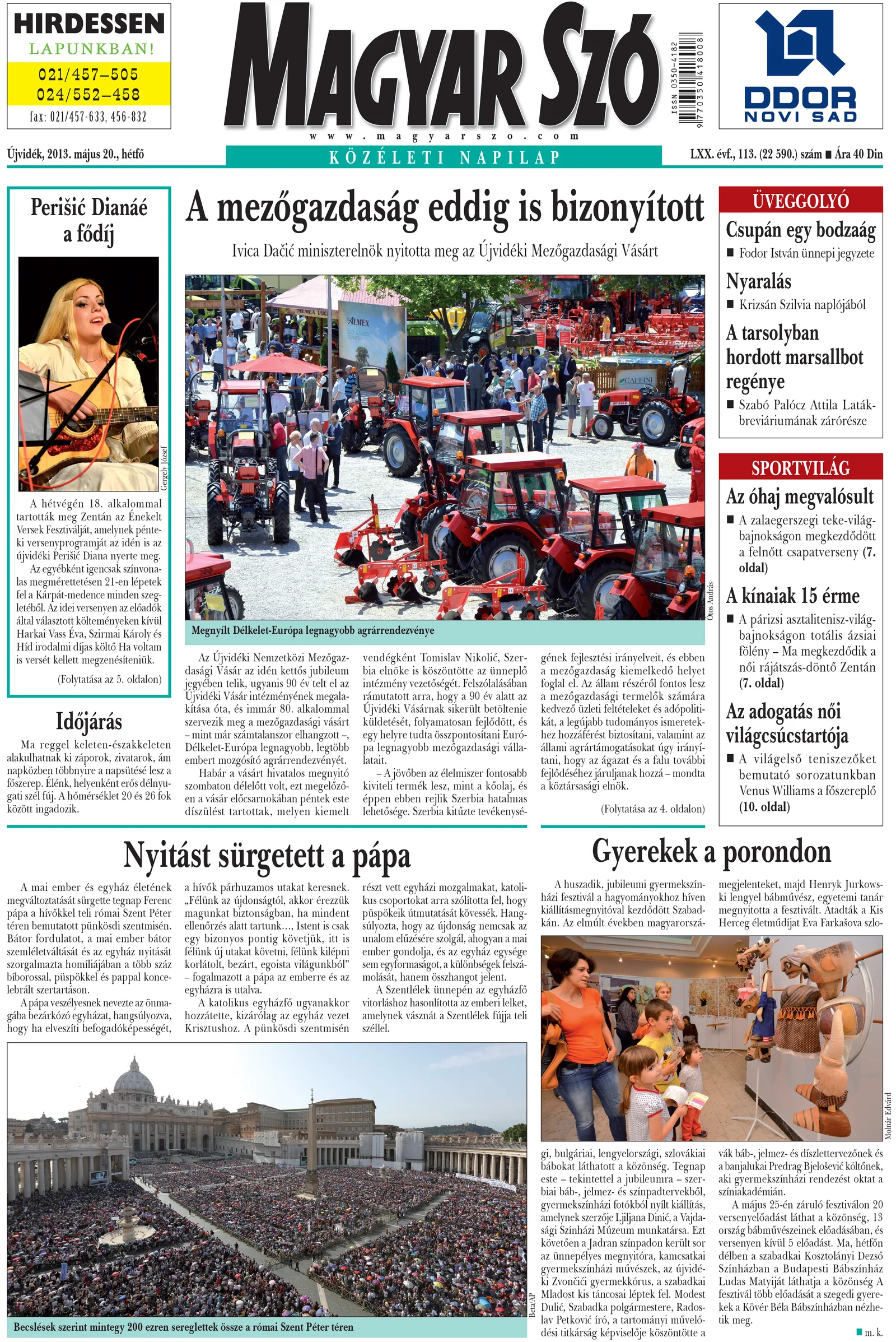 Magyar Szó, 70. évf. 2013. május 20. 113. sz. 1–16. oldal