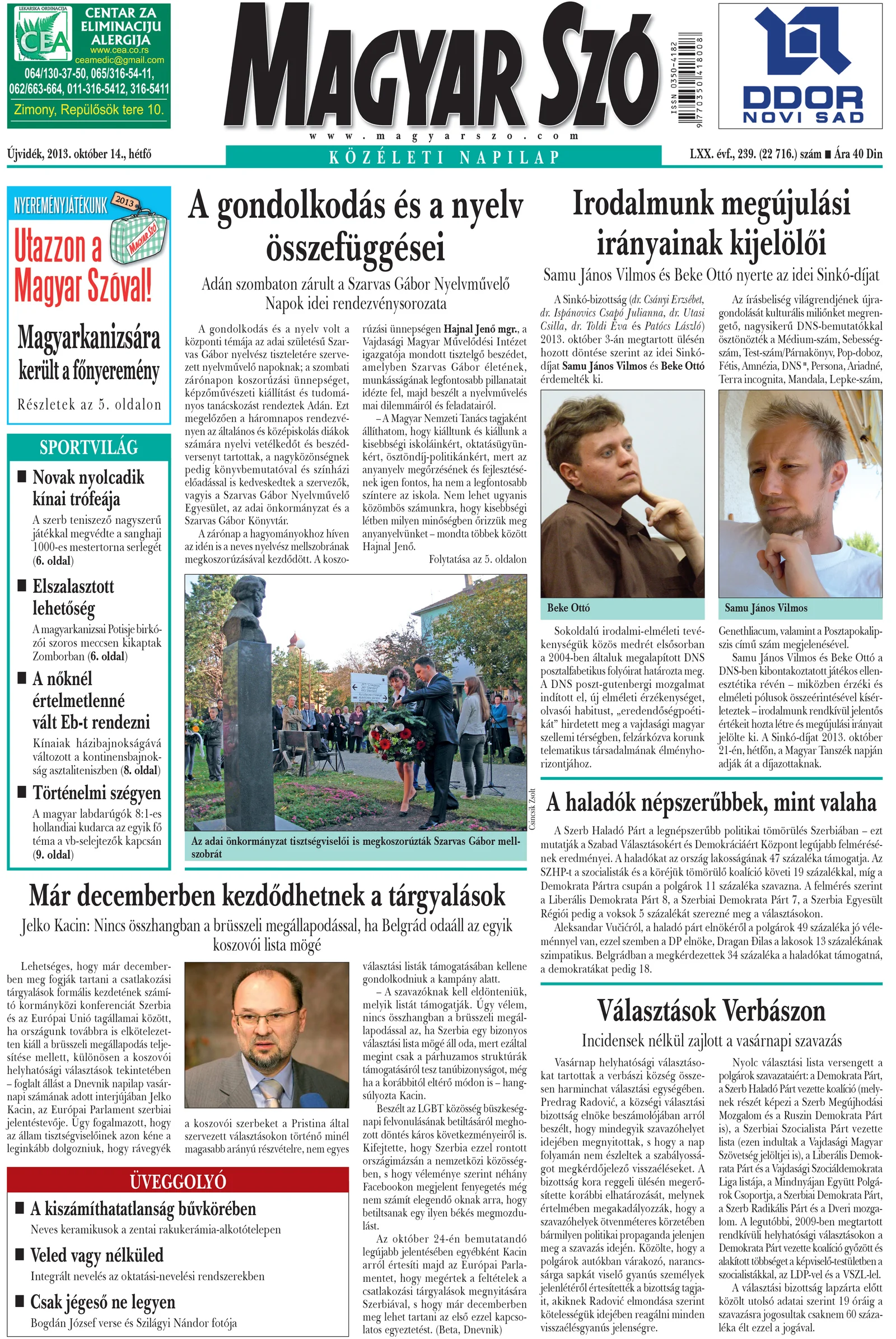 Magyar Szó, 70. évf. 2013. október 14. 239. sz. 1–16. oldal