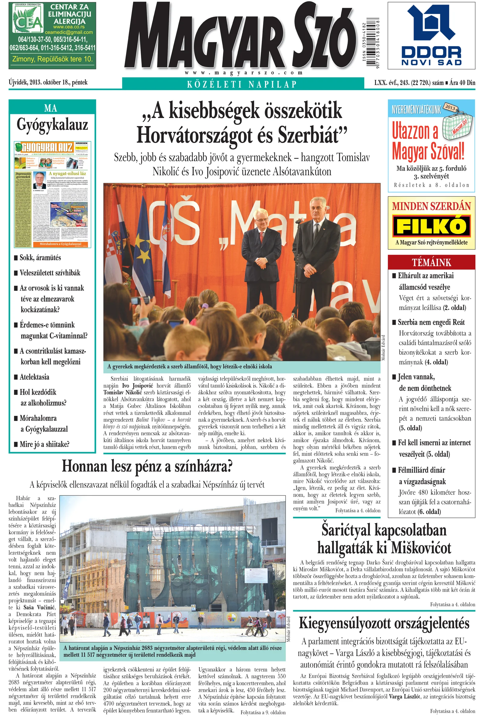 Magyar Szó, 70. évf. 2013. október 18. 243. sz. 1–16. oldal