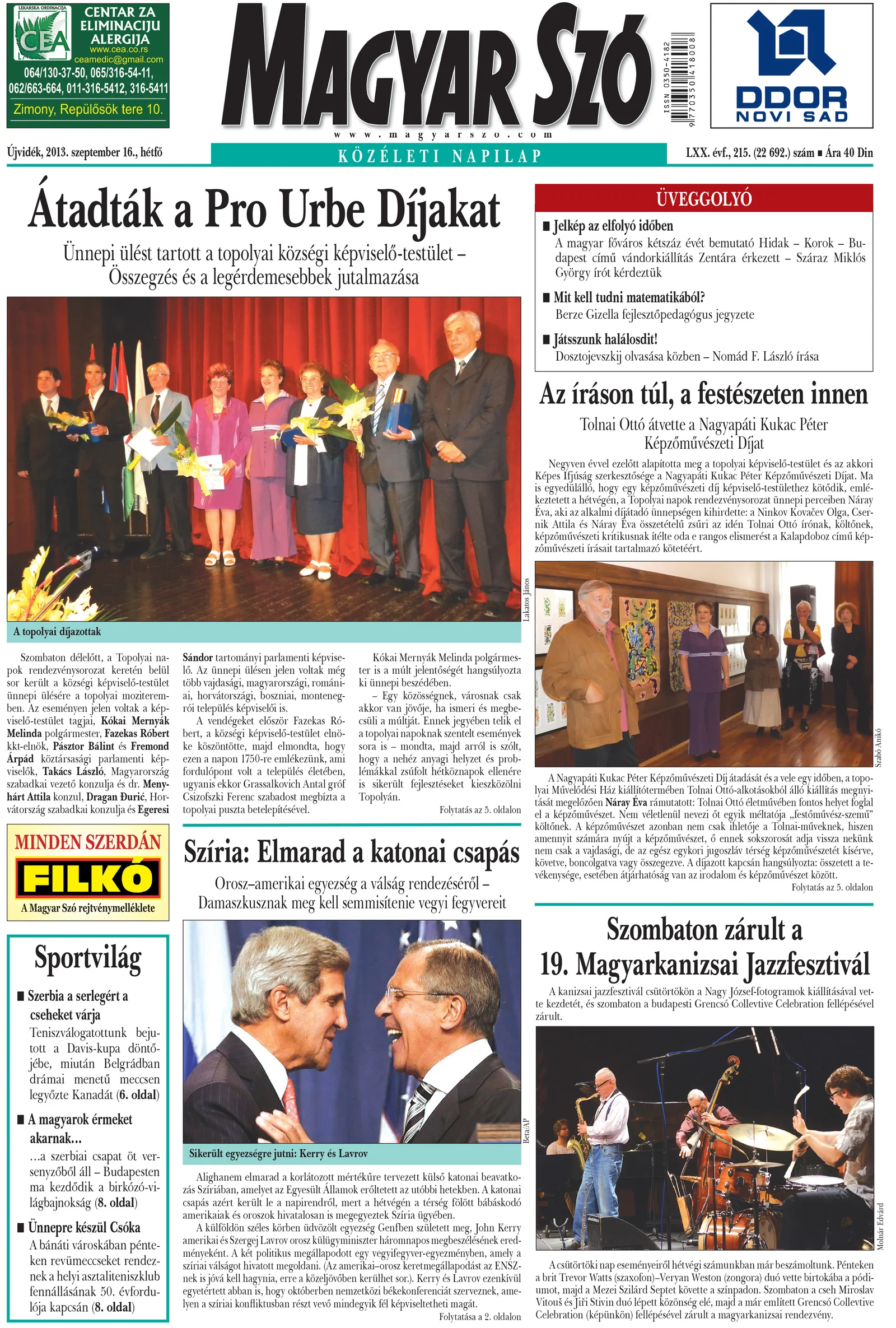 Magyar Szó, 70. évf. 2013. szeptember 16. 215. sz. 1–16. oldal
