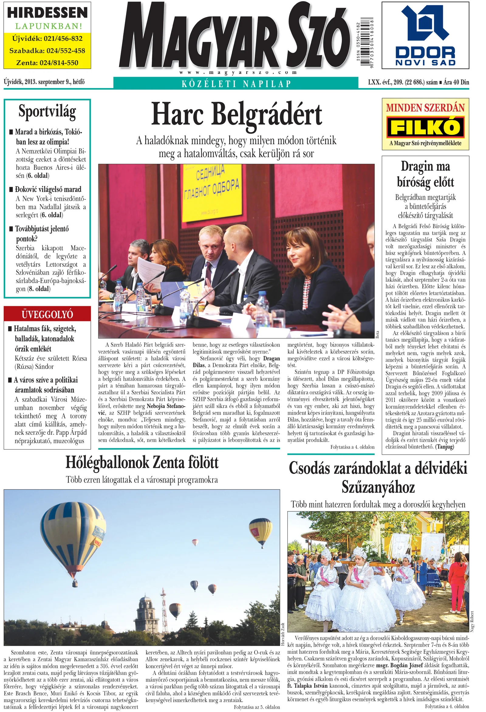Magyar Szó, 70. évf. 2013. szeptember 9. 209. sz. 1–16. oldal