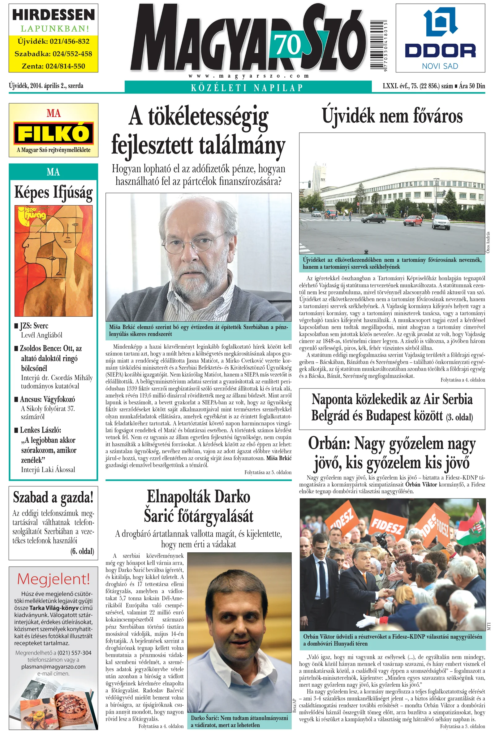Magyar Szó, 71. évf. 2014. április 2. 75. sz. 1–20. oldal
