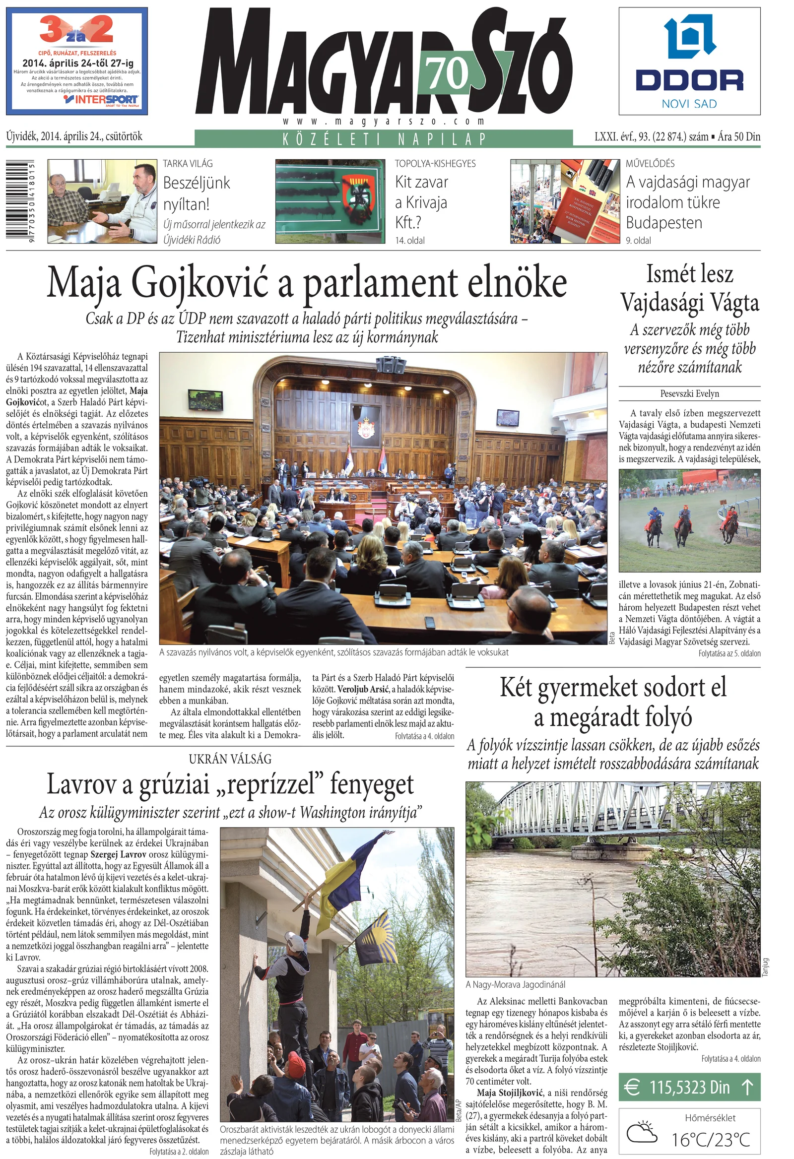 Magyar Szó, 71. évf. 2014. április 24. 93. sz. 1–20. oldal