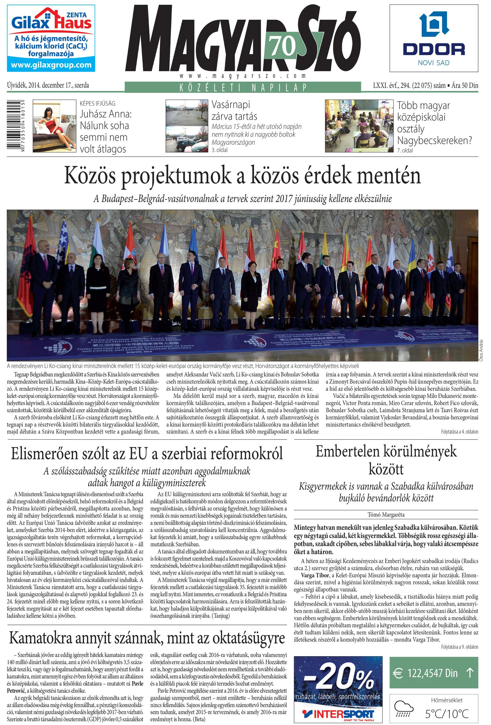 Magyar Szó, 71. évf. 2014. december 17. 294. sz.