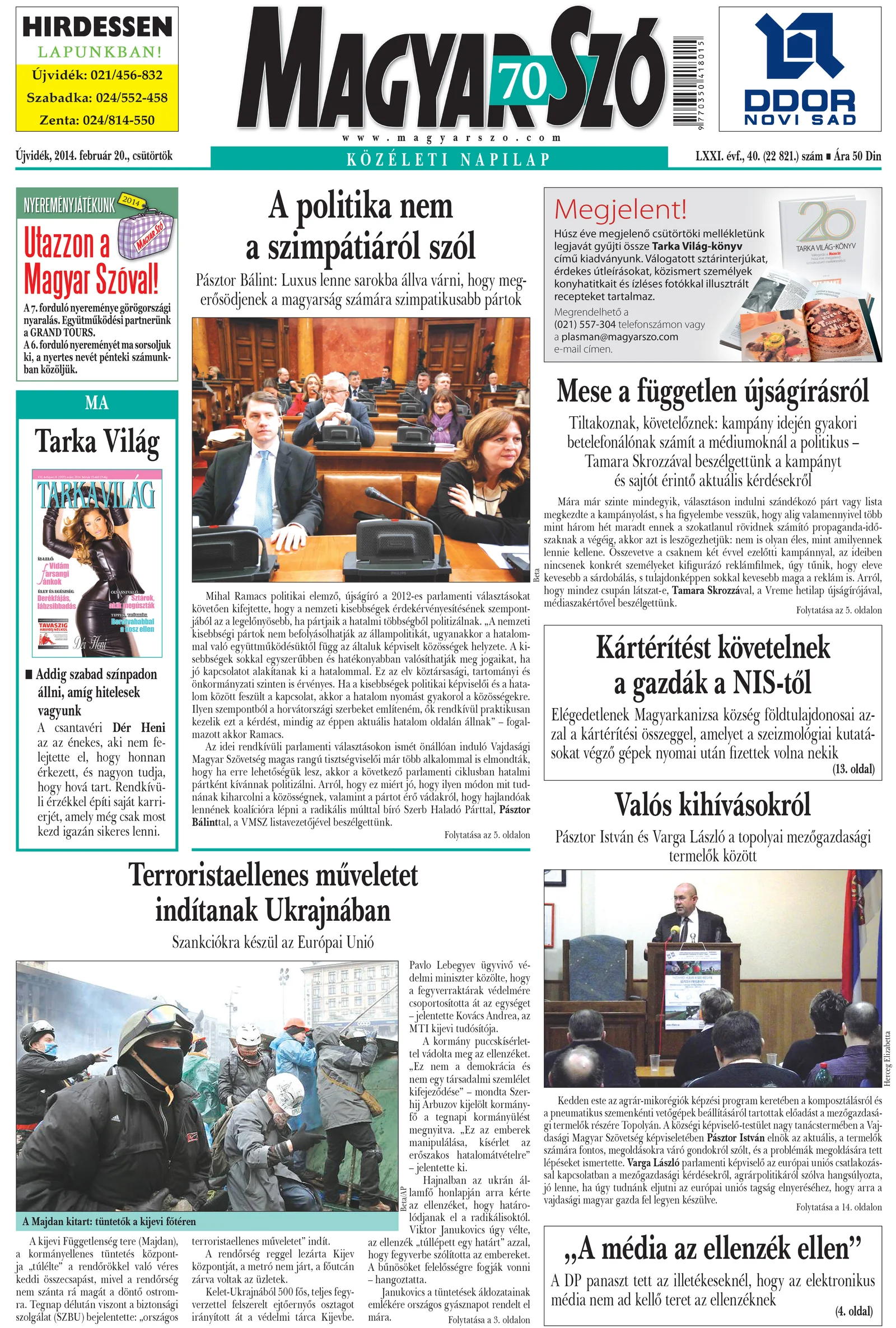 Magyar Szó, 71. évf. 2014. február 20. 40. sz. 1–20. oldal