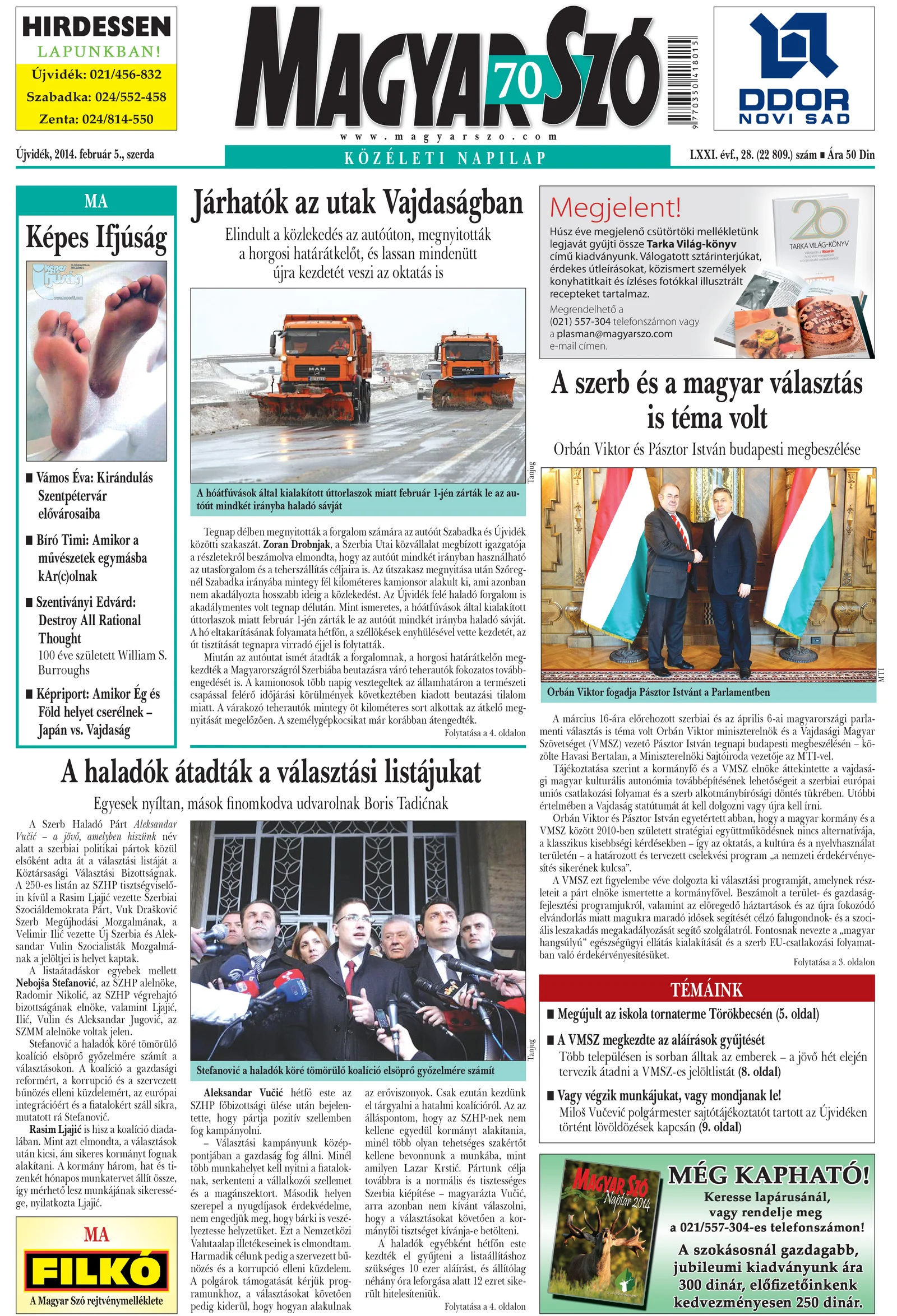 Magyar Szó, 71. évf. 2014. február 5. 28. sz. 1–20. oldal