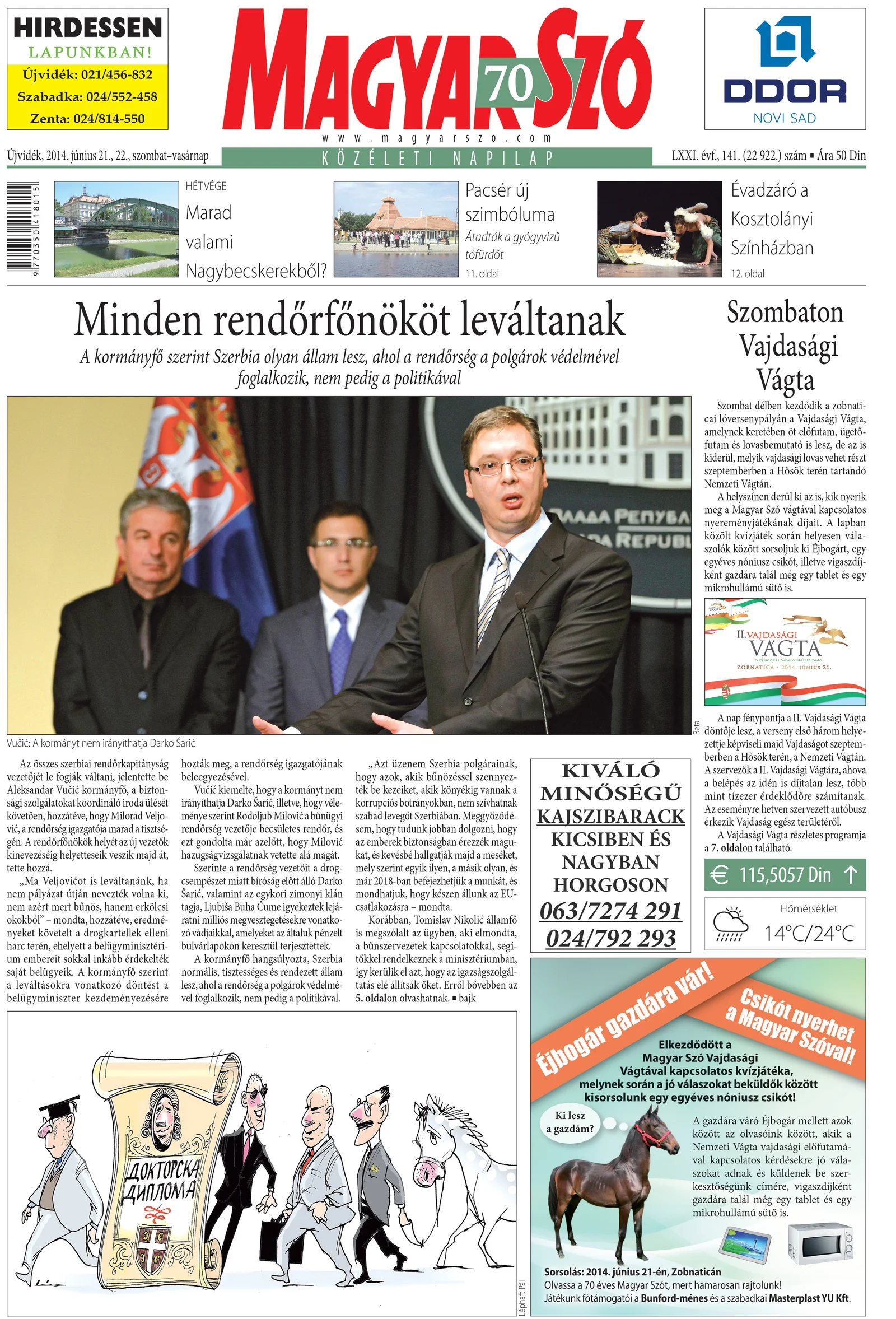 Magyar Szó, 71. évf. 2014. június 21. – 22. 141. sz. 1–32. oldal