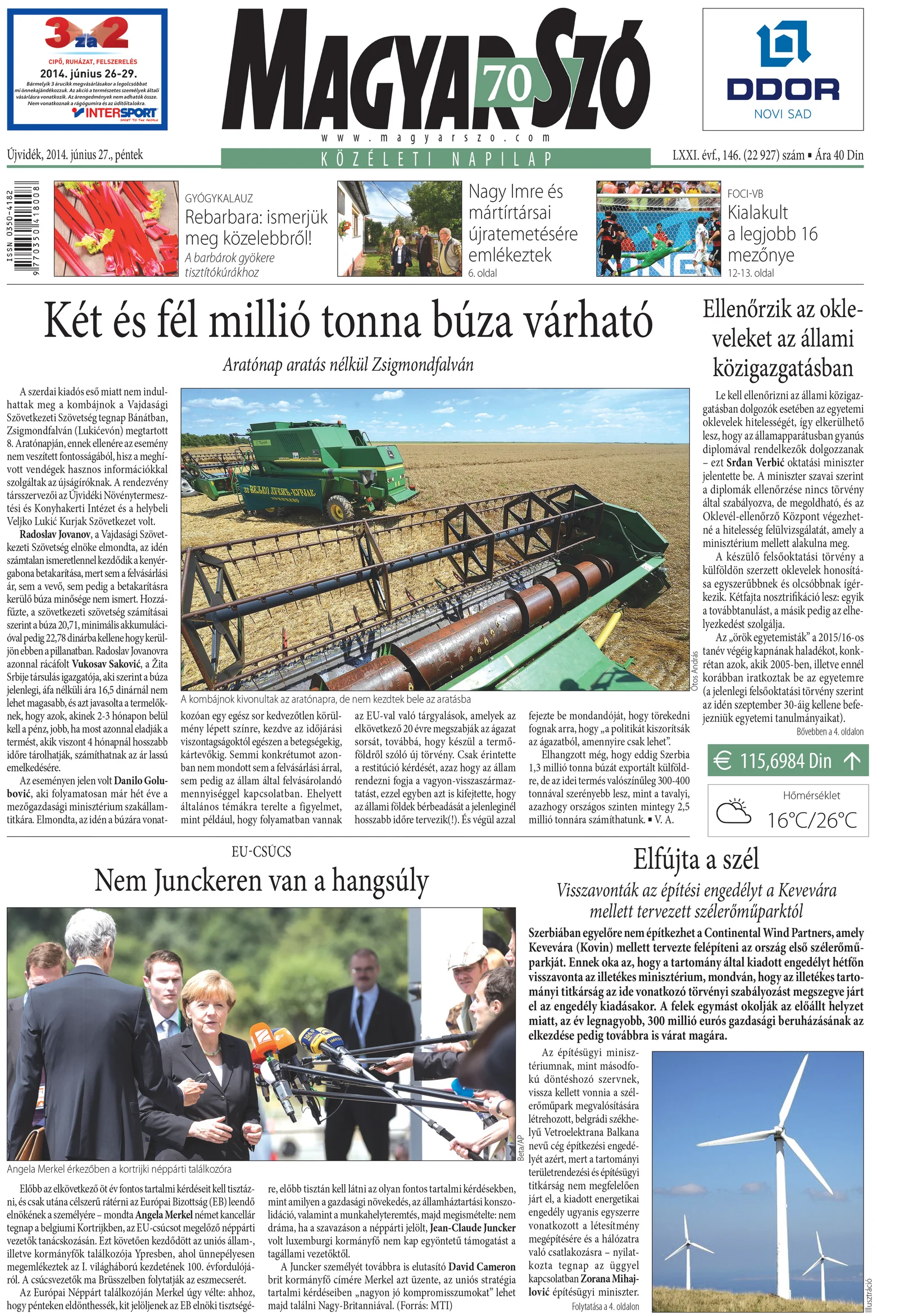 Magyar Szó, 71. évf. 2014. június 27. 146. sz. 1–16. oldal
