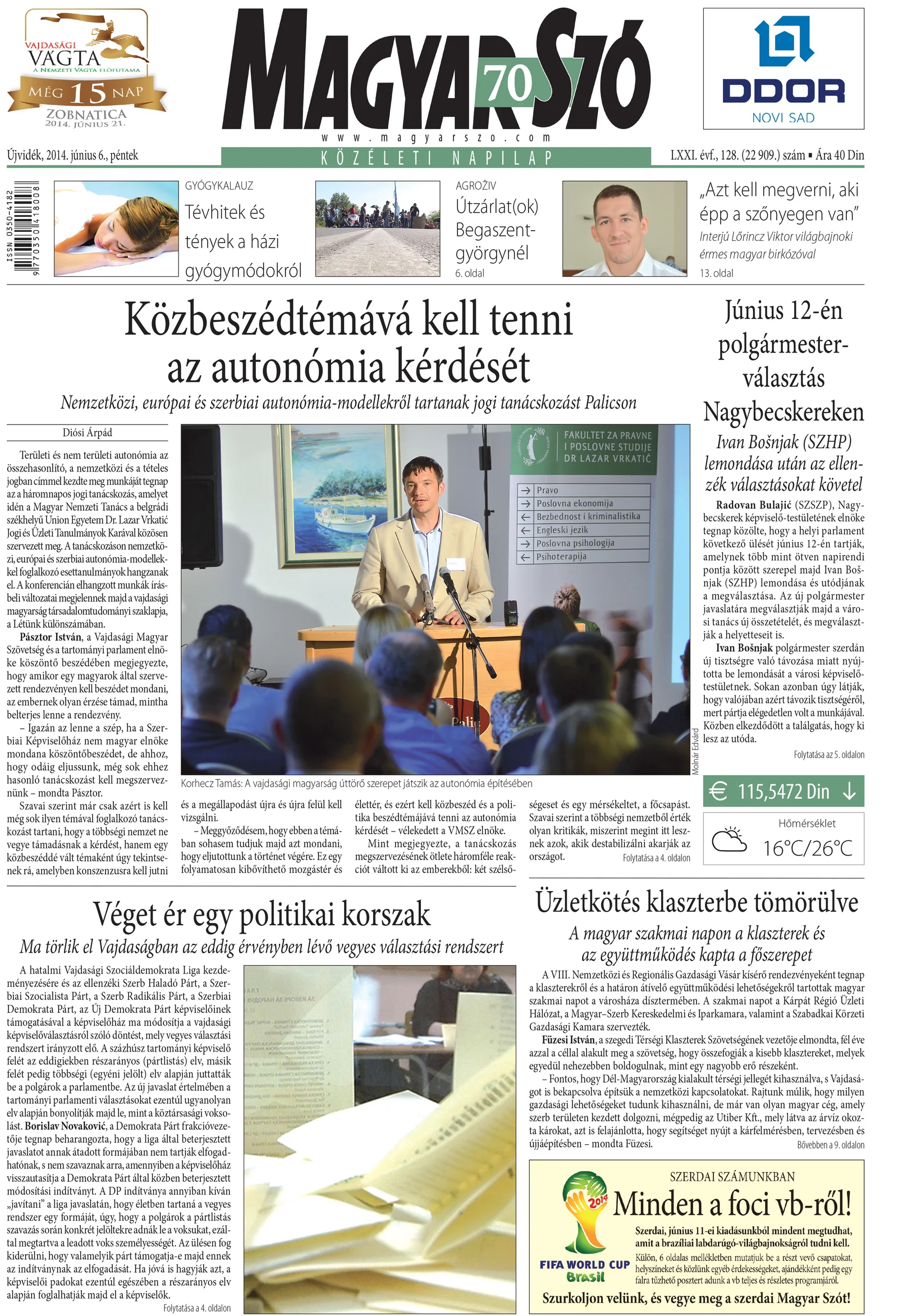 Magyar Szó, 71. évf. 2014. június 6. 128. sz. 1–16. oldal