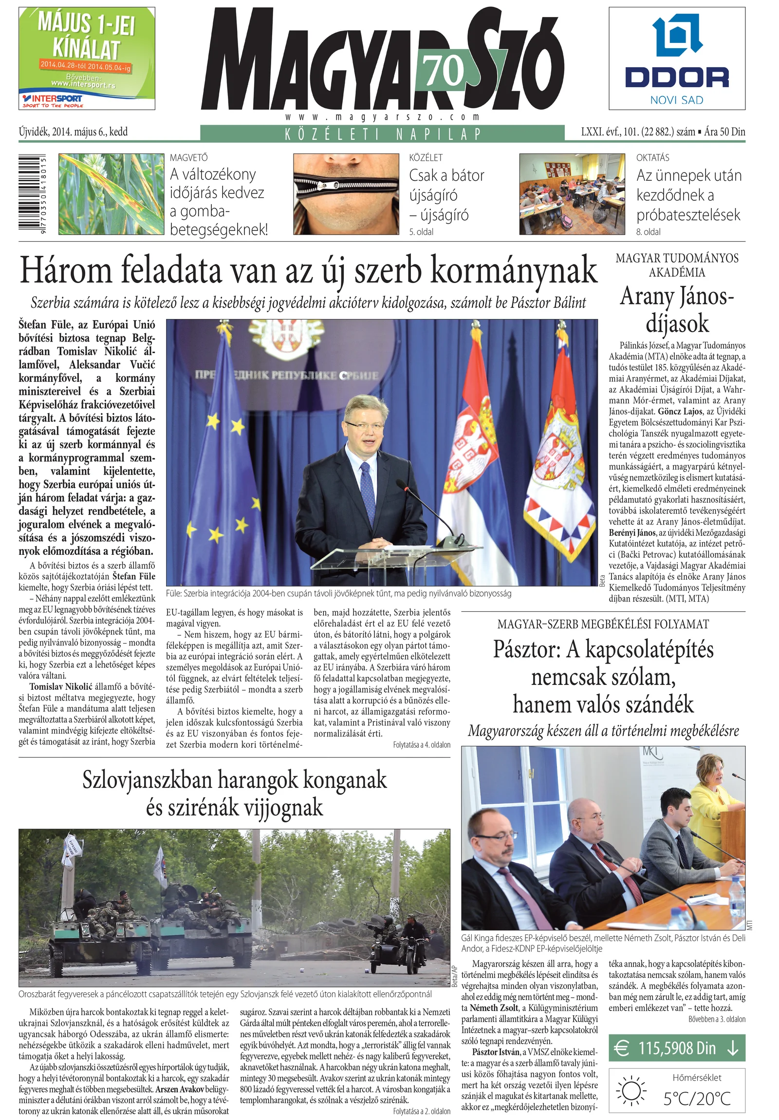 Magyar Szó, 71. évf. 2014. május 6. 101. sz. 1–20. oldal
