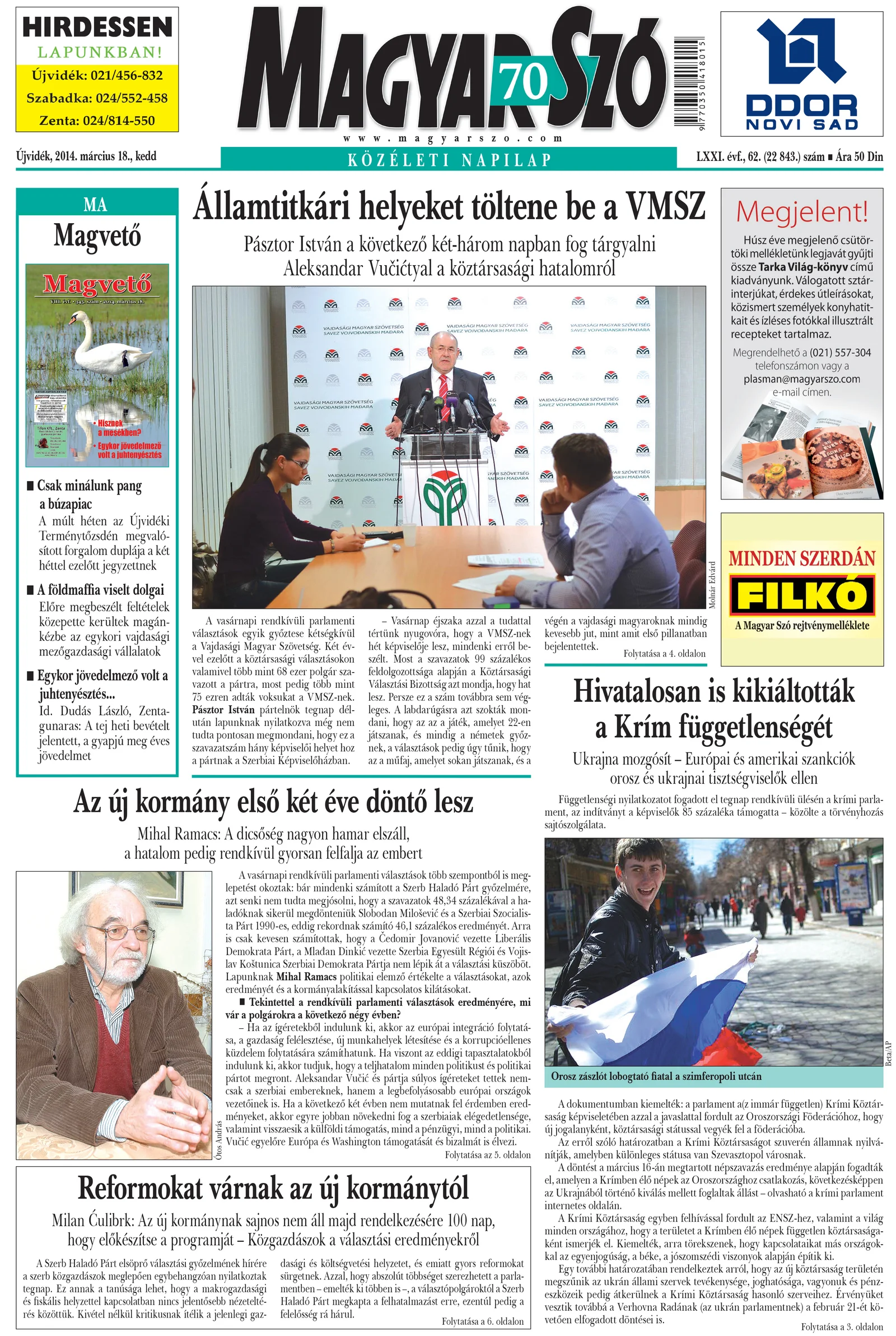 Magyar Szó, 71. évf. 2014. március 18. 62. sz. 1–20. oldal