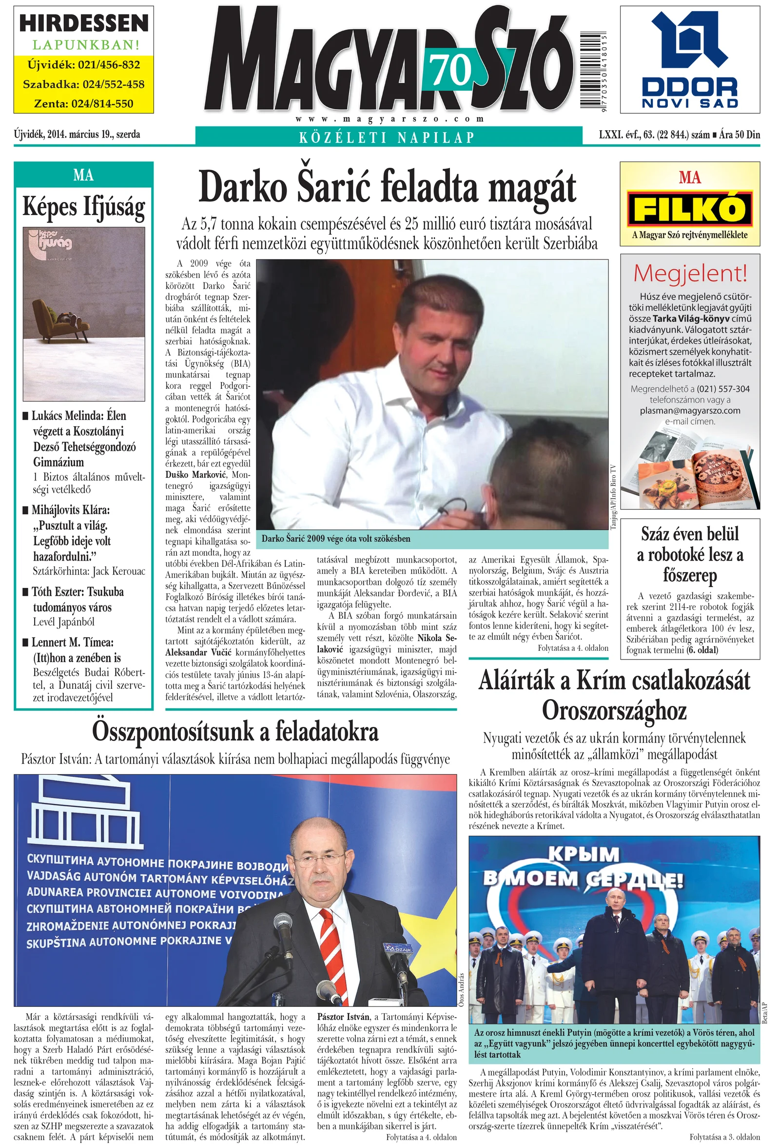 Magyar Szó, 71. évf. 2014. március 19. 63. sz. 1–20. oldal