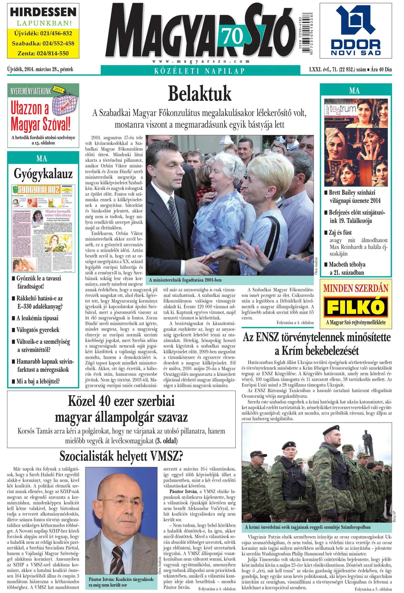 Magyar Szó, 71. évf. 2014. március 28. 71. sz. 1–16. oldal