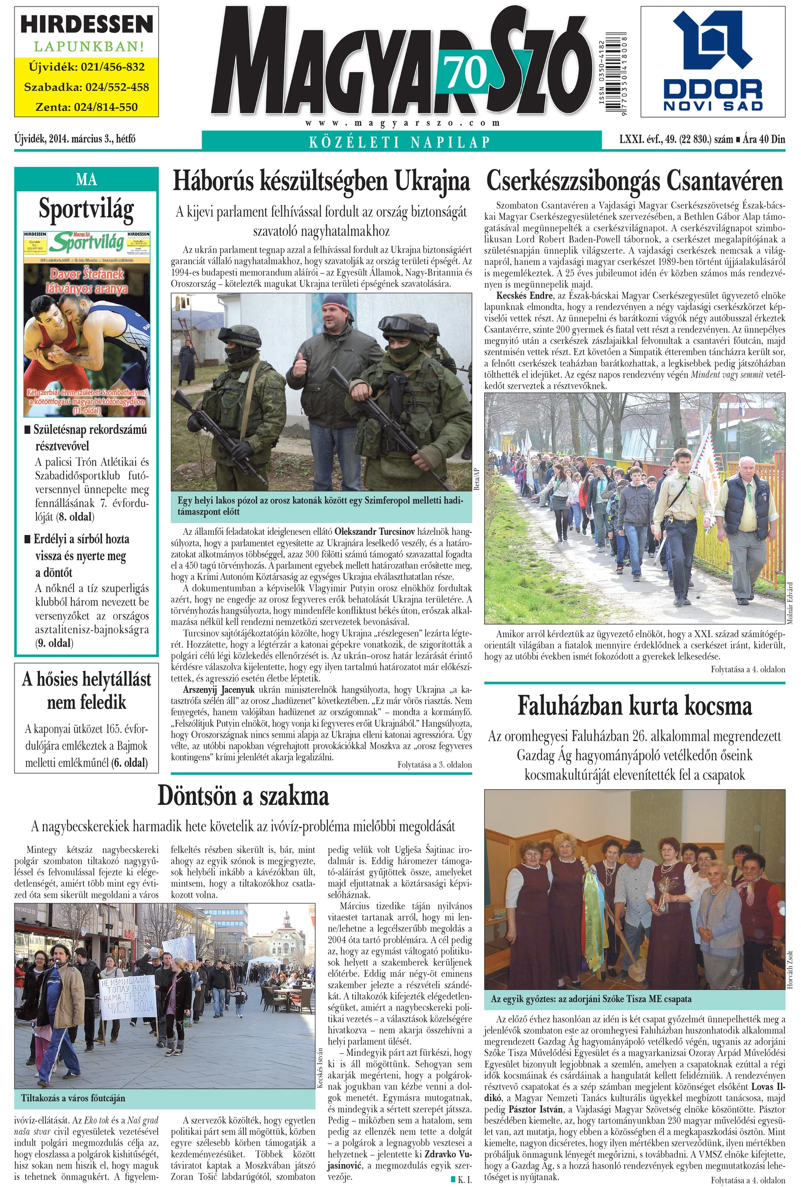 Magyar Szó, 71. évf. 2014. március 3. 49. sz. 1–16. oldal