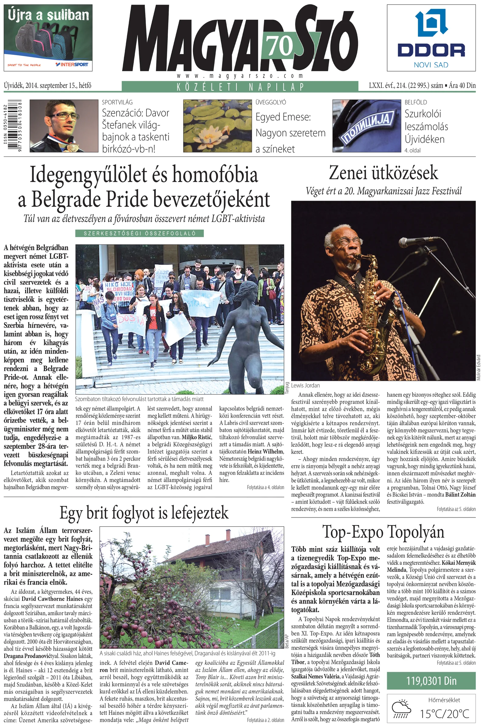 Magyar Szó, 71. évf. 2014. szeptember 15. 214. sz. 1–20. oldal