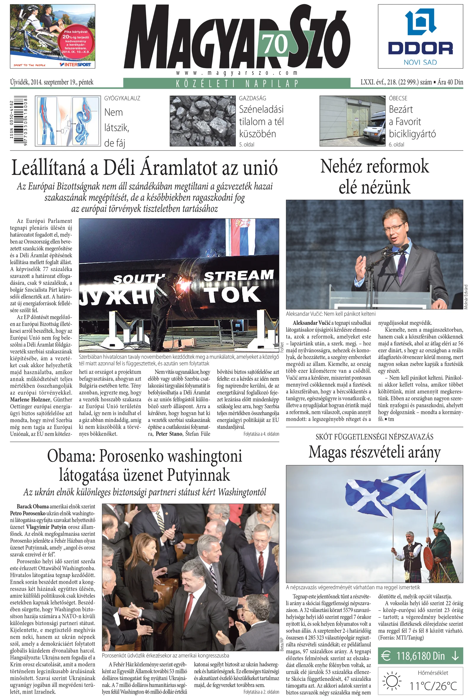 Magyar Szó, 71. évf. 2014. szeptember 19. 218. sz. 1–16. oldal