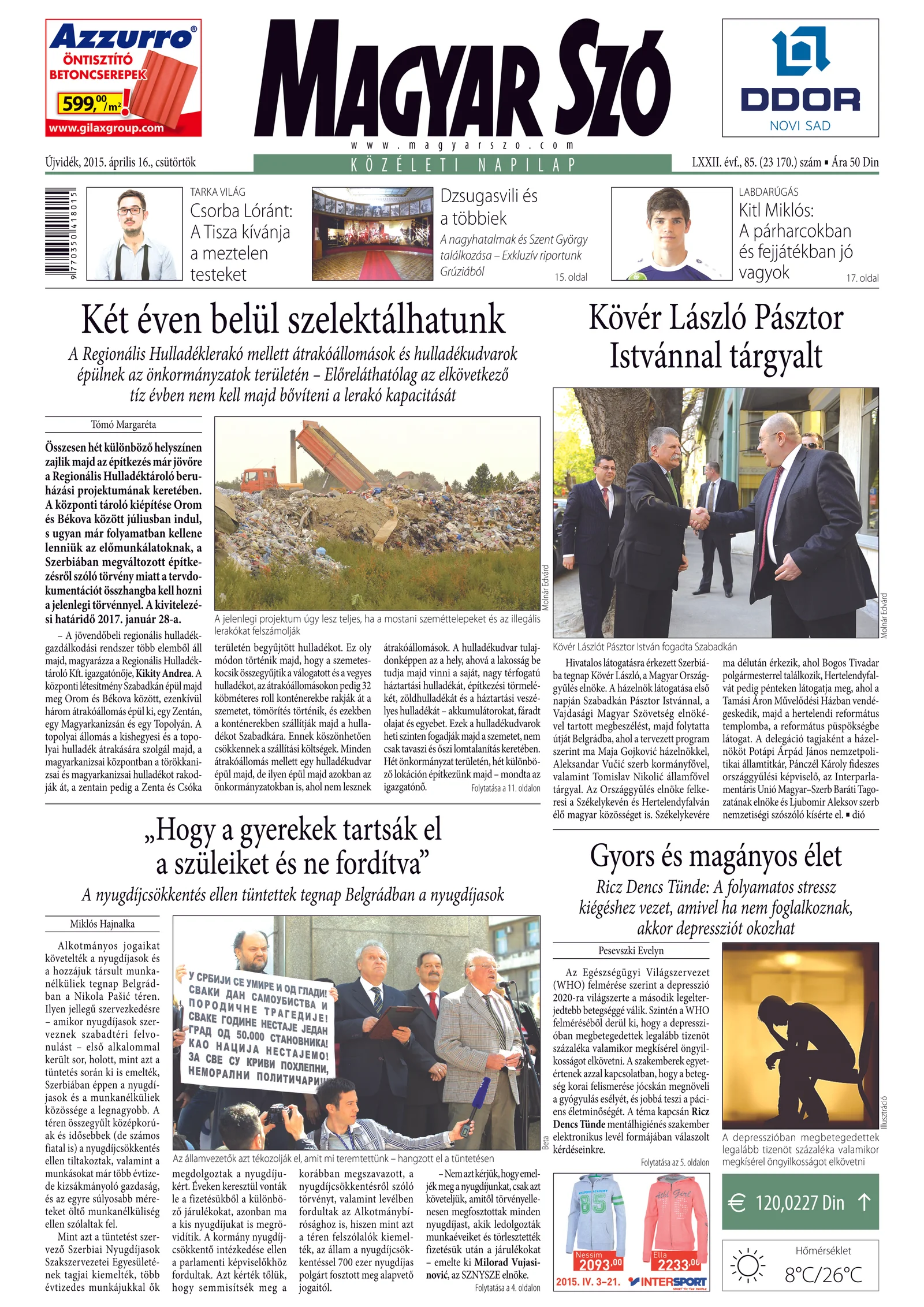 Magyar Szó, 72. évf. 2015. április 16. 85. sz. 1. oldal