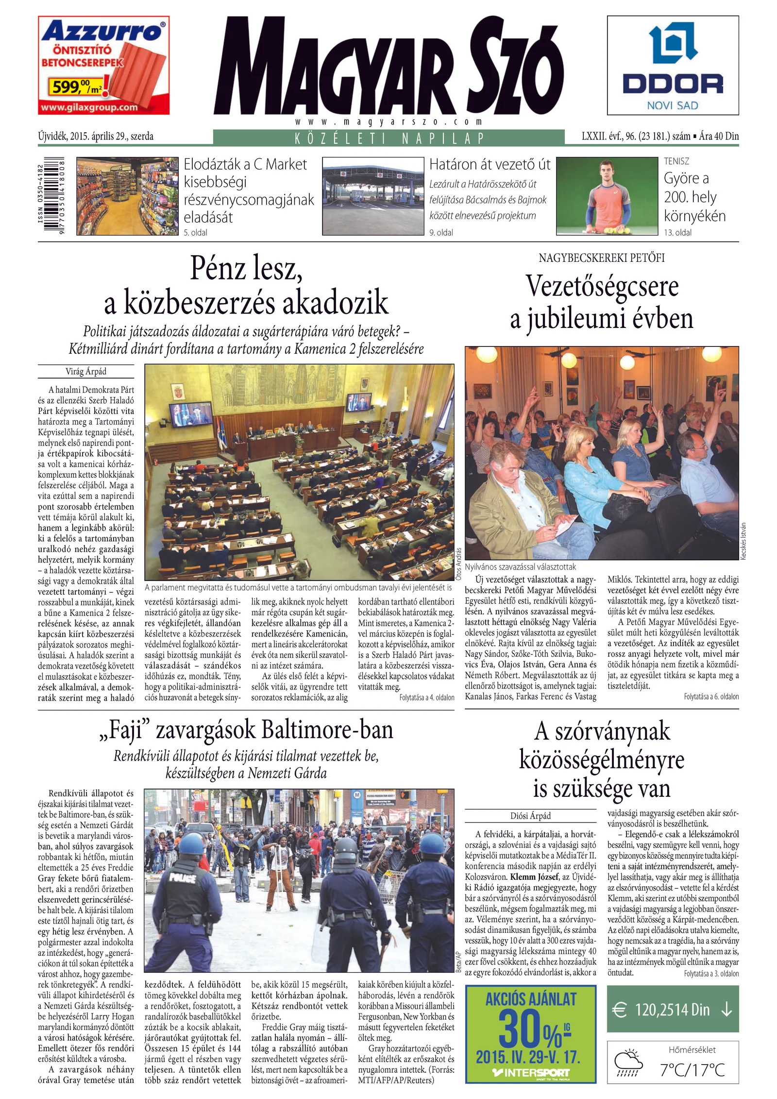 Magyar Szó, 72. évf. 2015. április 29. 96. sz. 1–16. oldal