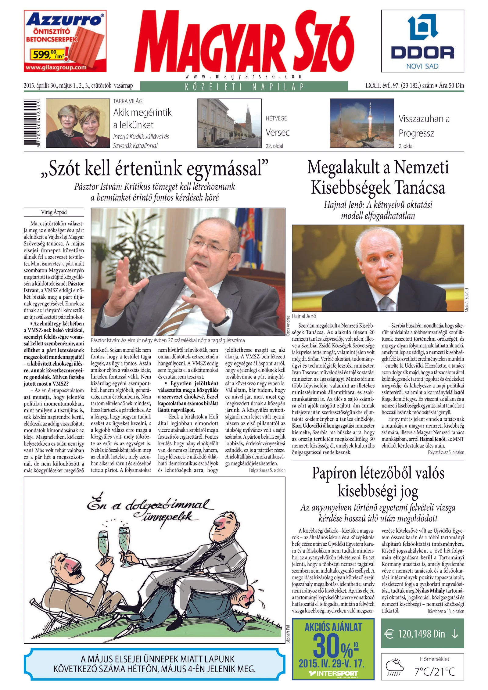 Magyar Szó, 72. évf. 2015. április 30. – május 3. 97. sz. 1–32. oldal