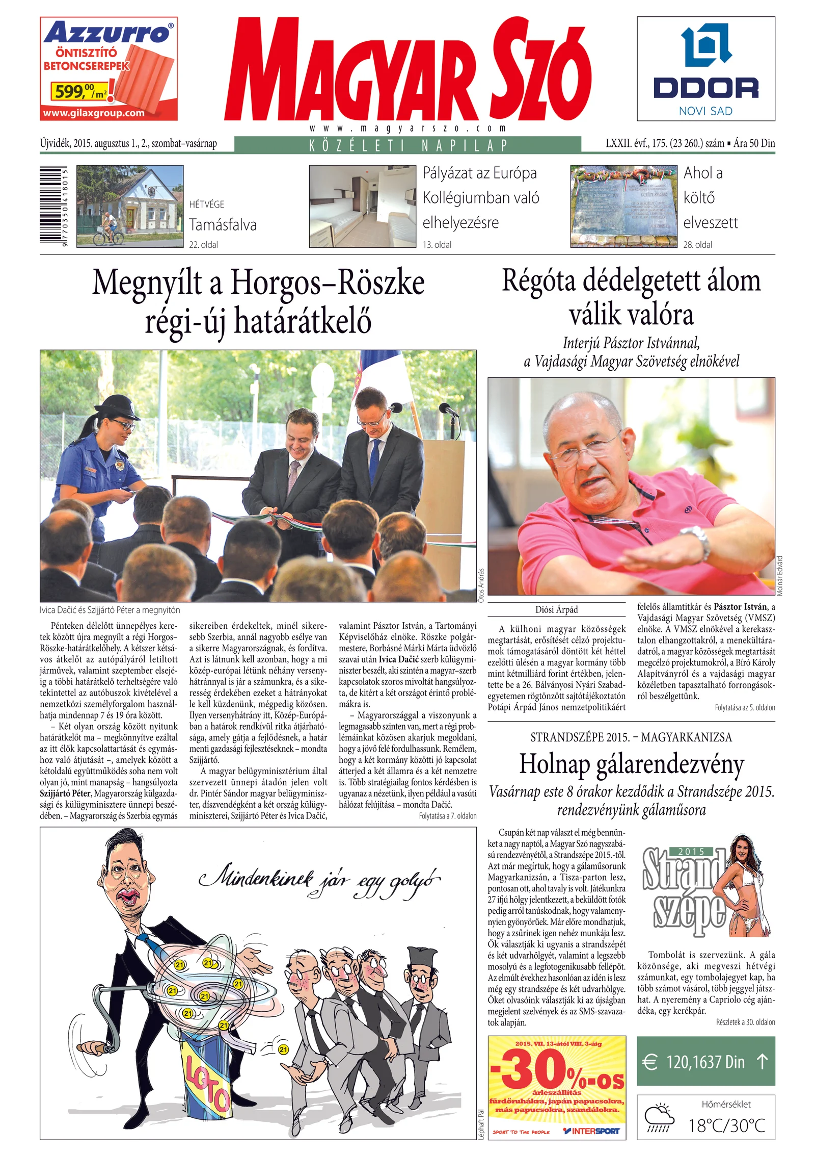 Magyar Szó, 72. évf. 2015. augusztus 1. – 2. 175. sz. 1–32. oldal