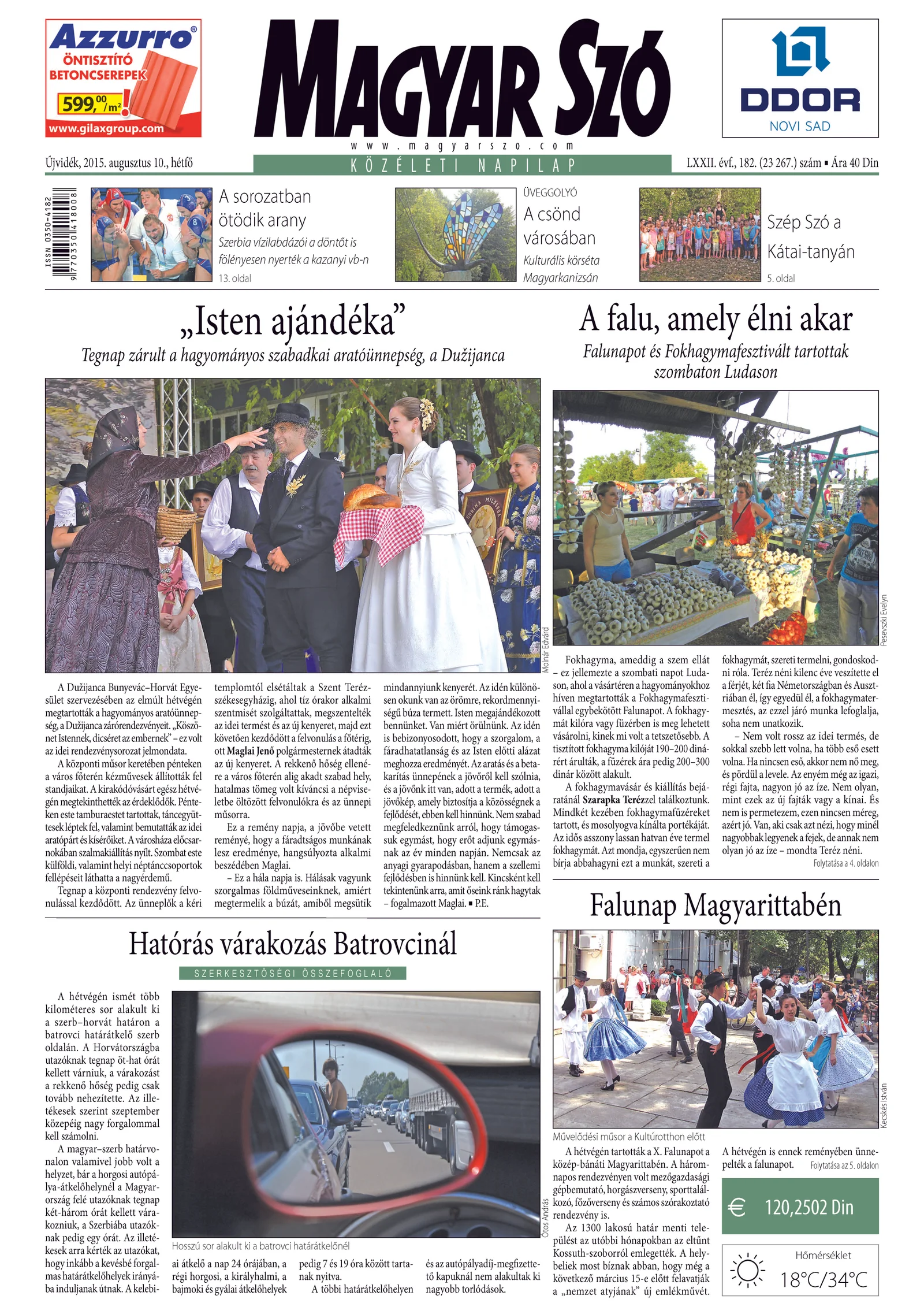 Magyar Szó, 72. évf. 2015. augusztus 10. 182. sz. 1–20. oldal