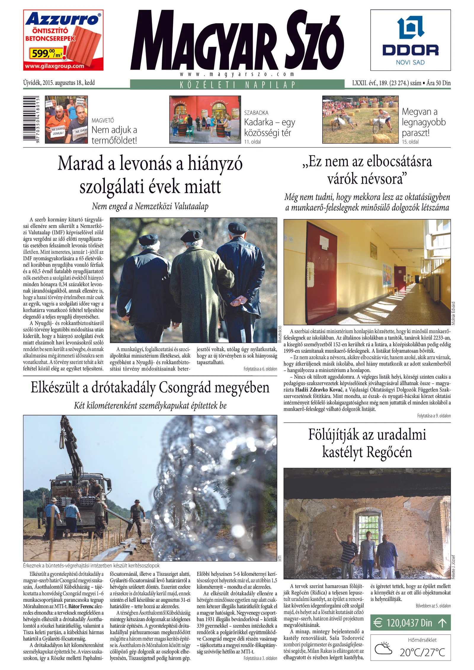 Magyar Szó, 72. évf. 2015. augusztus 18. 189. sz. 1–20. oldal