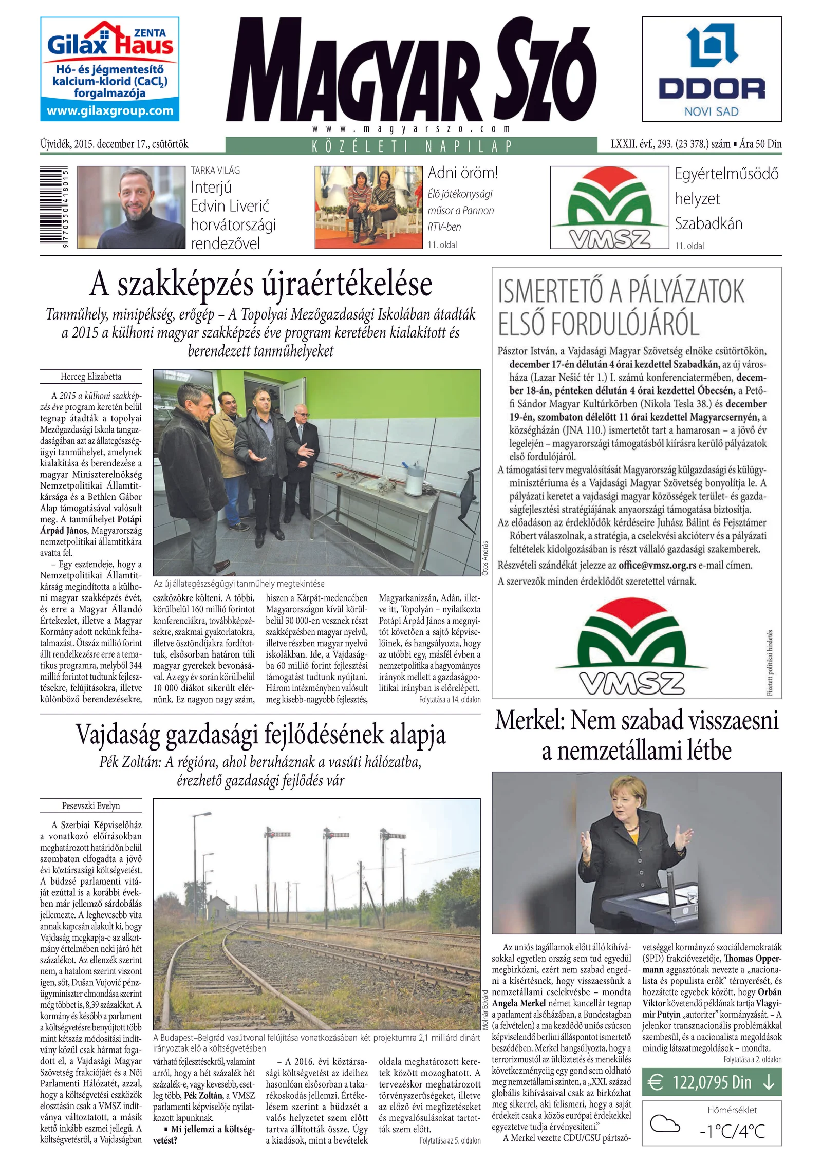 Magyar Szó, 72. évf. 2015. december 17. 293. sz. 1–20. oldal