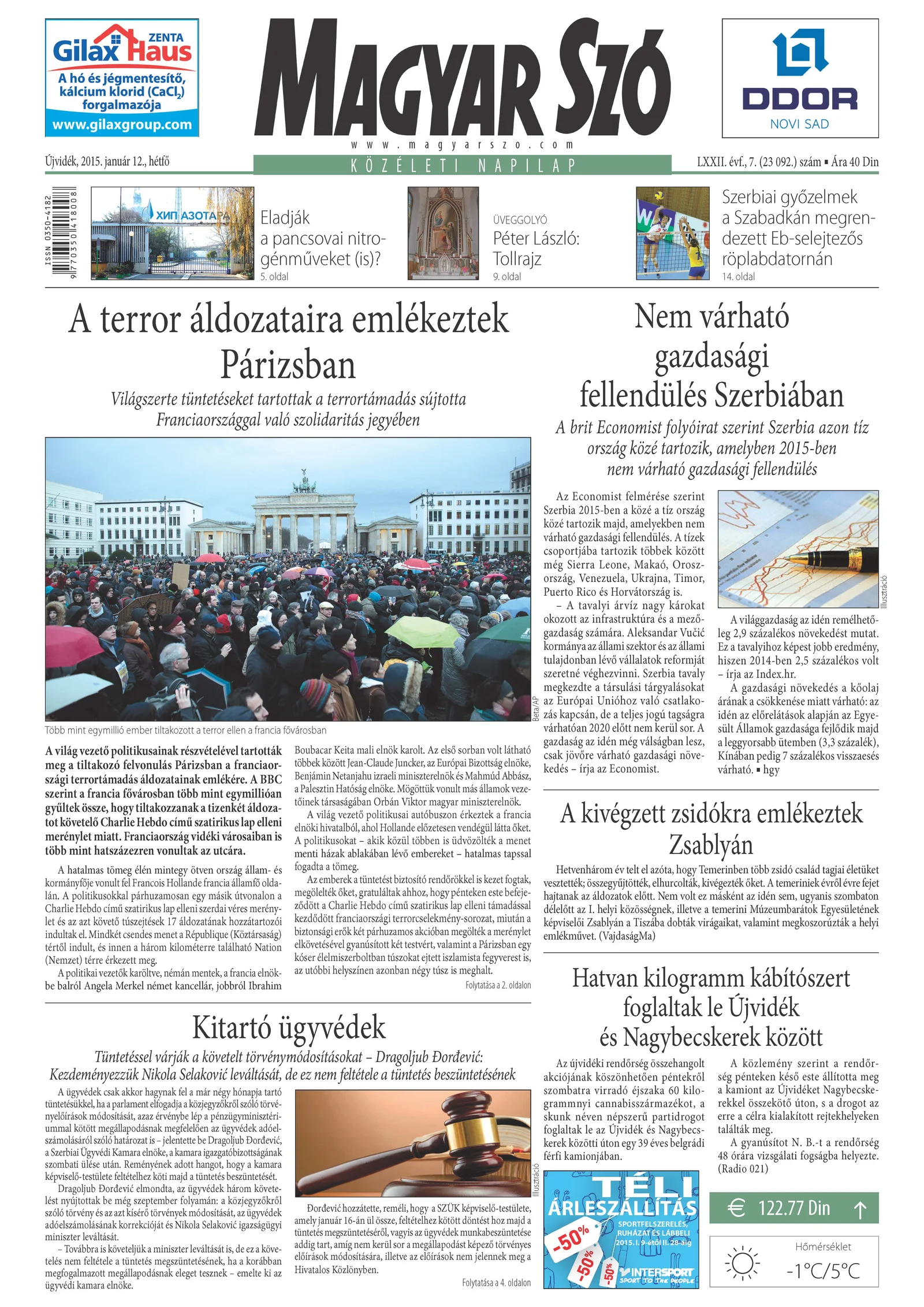 Magyar Szó, 72. évf. 2015. január 12. 7. sz. 1–20. oldal