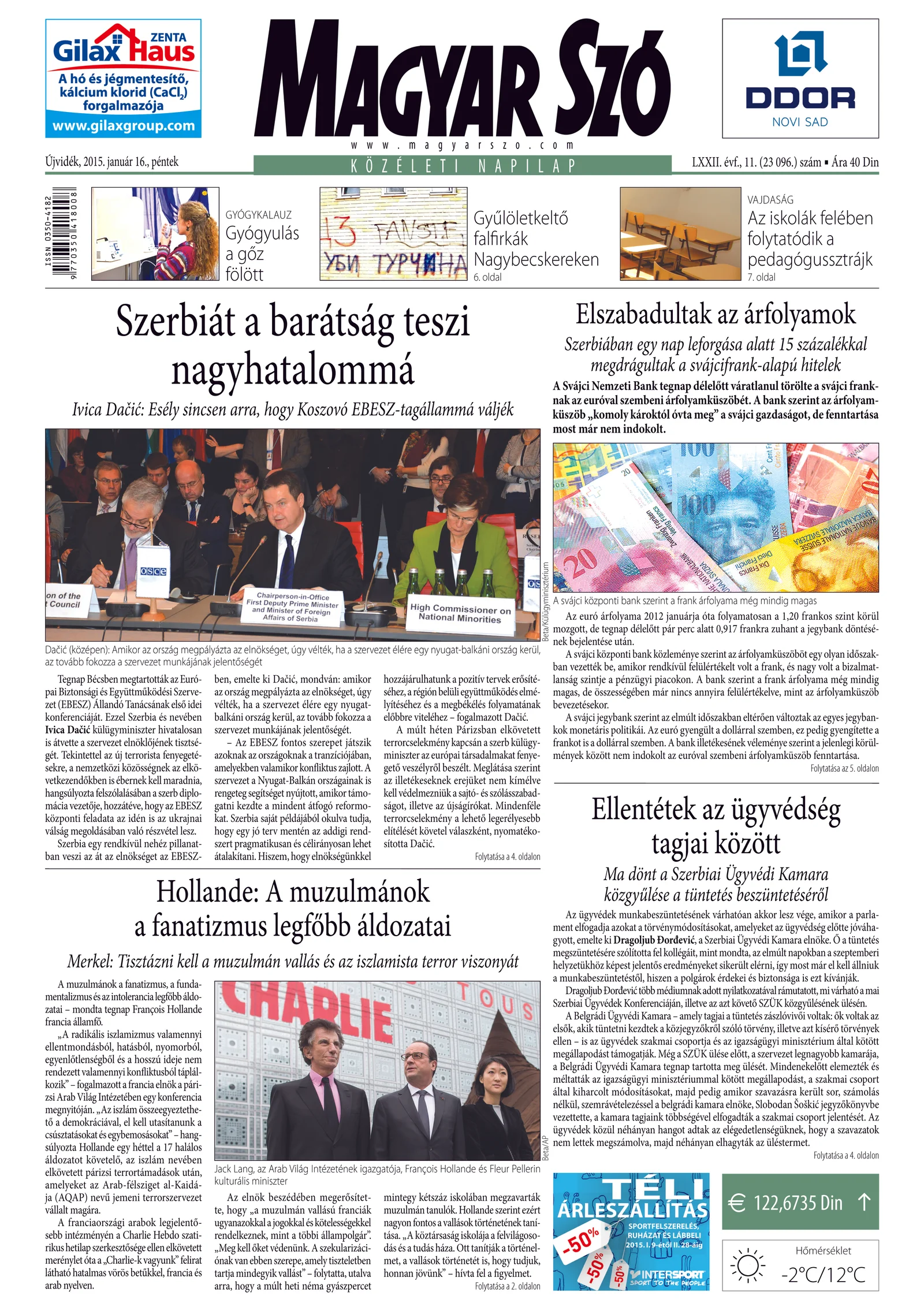 Magyar Szó, 72. évf. 2015. január 16. 11. sz. 1–16. oldal