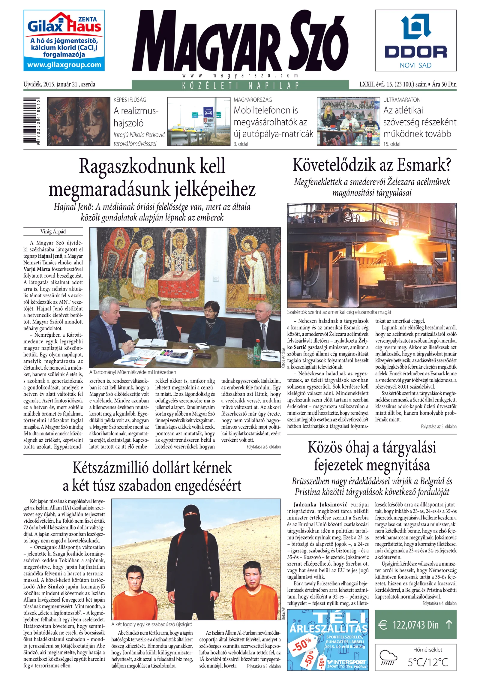 Magyar Szó, 72. évf. 2015. január 21. 15. sz. 1–16. oldal