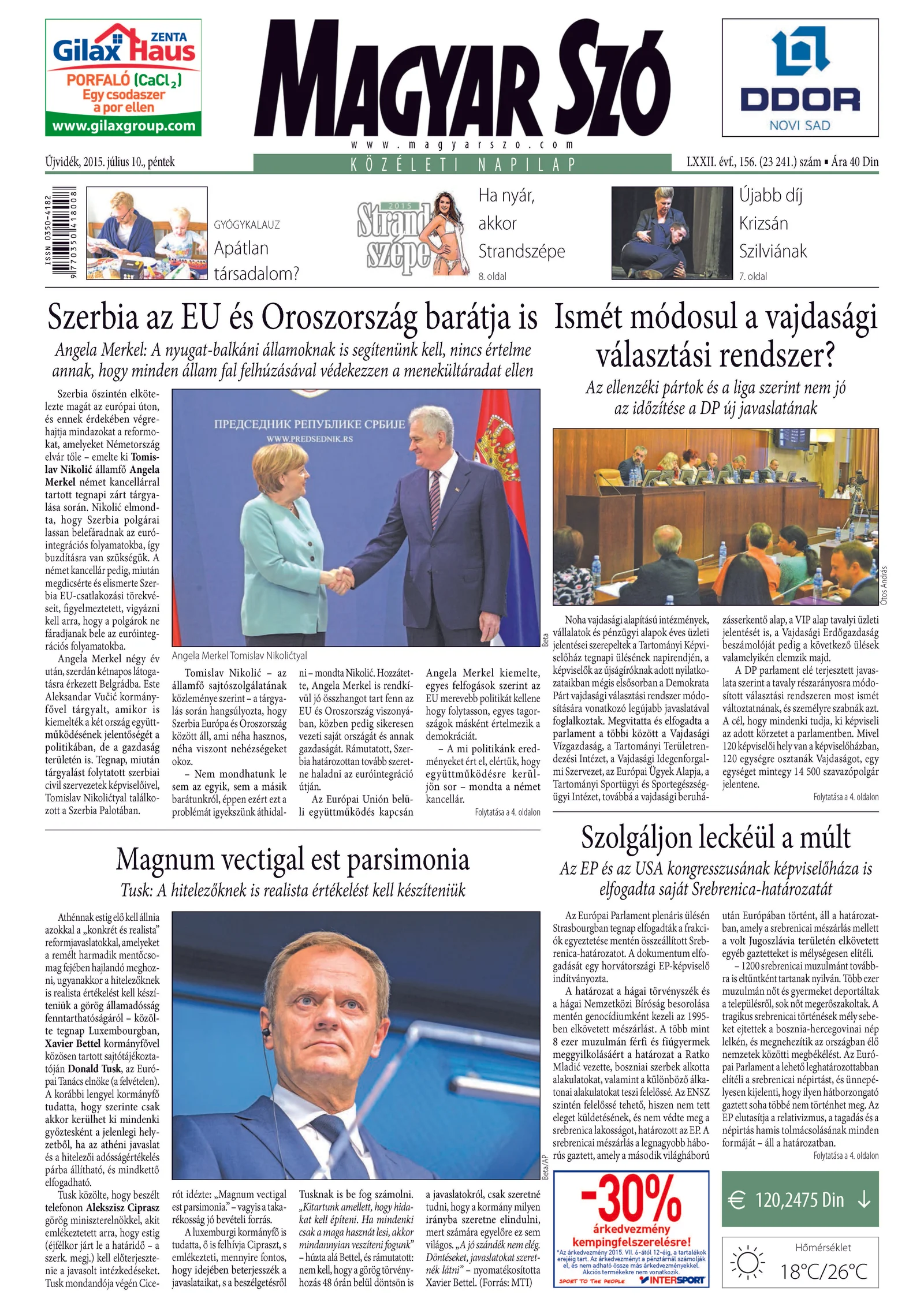 Magyar Szó, 72. évf. 2015. július 10. 156. sz. 1–16. oldal