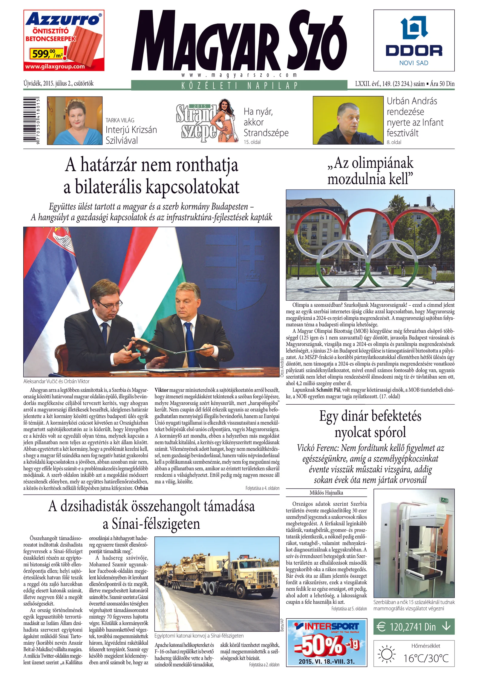 Magyar Szó, 72. évf. 2015. július 2. 149. sz. 1–20. oldal