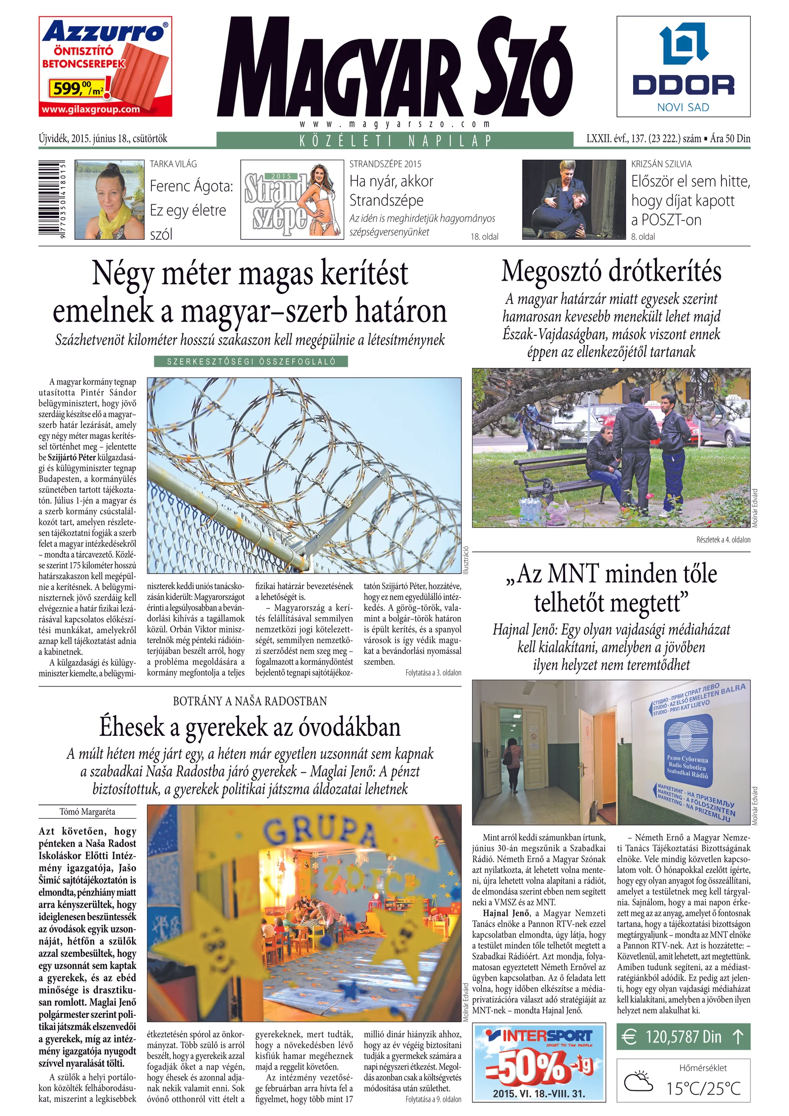 Magyar Szó, 72. évf. 2015. június 18. 137. sz. 1–20. oldal