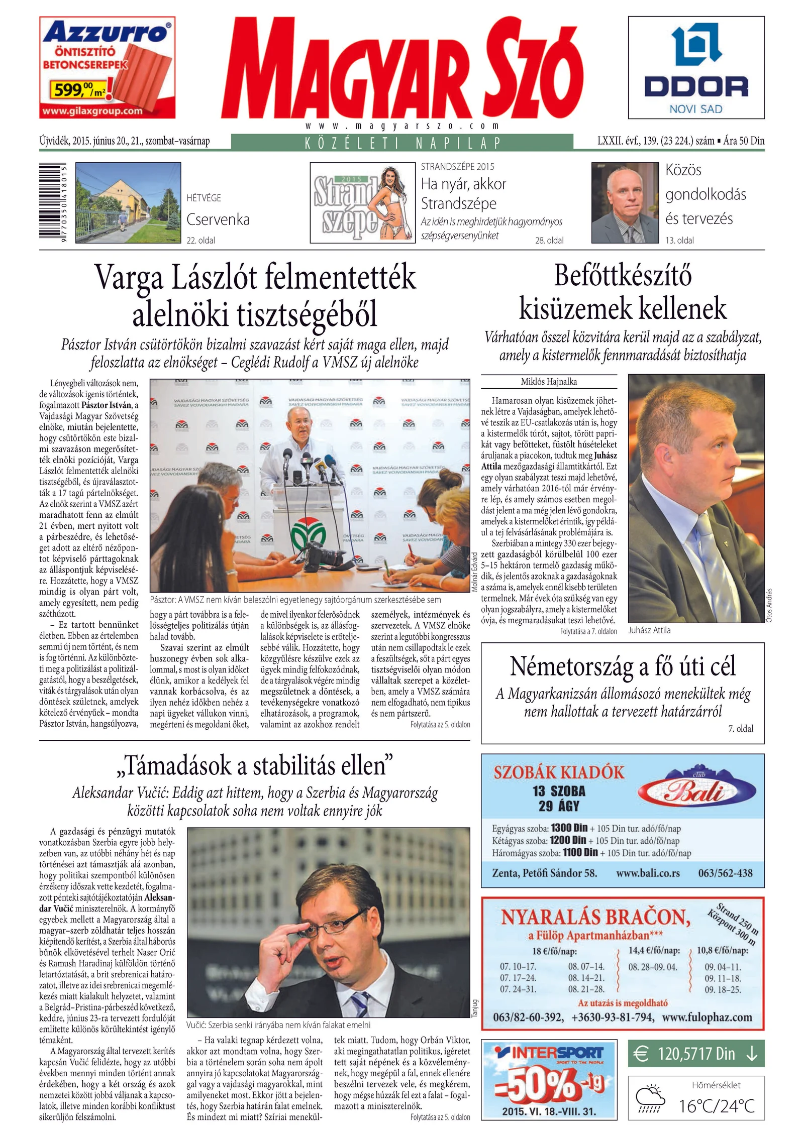 Magyar Szó, 72. évf. 2015. június 20. – 21. 139. sz. 1–32. oldal