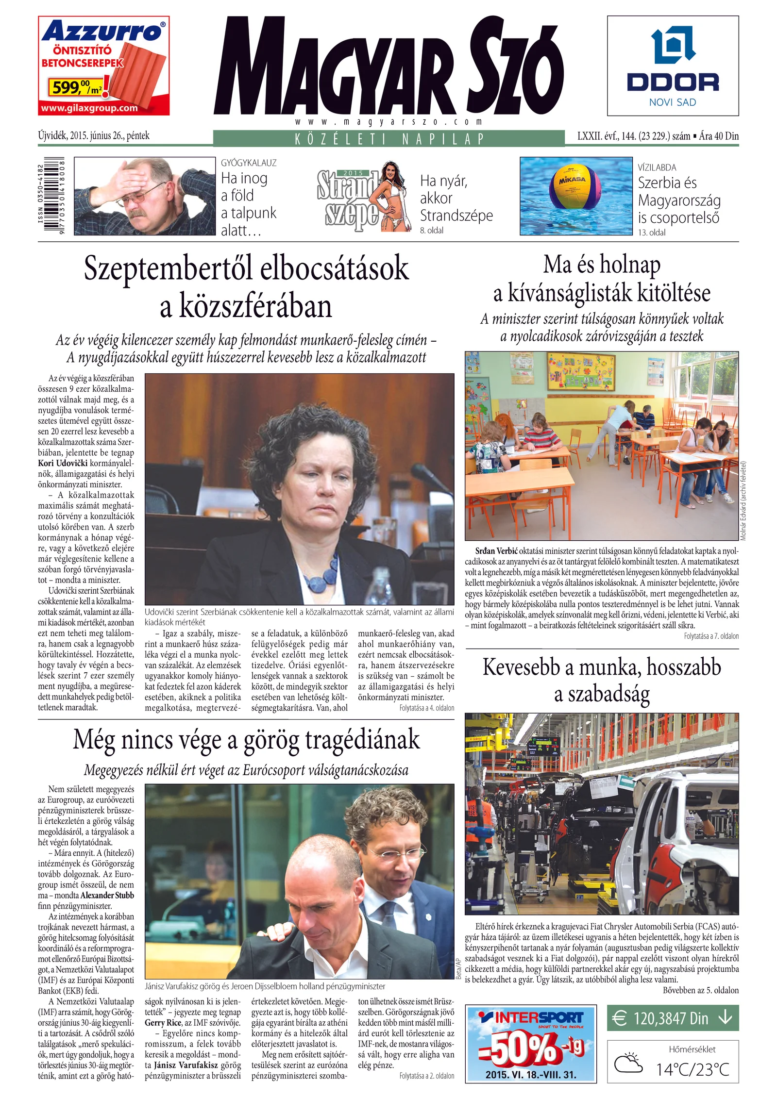 Magyar Szó, 72. évf. 2015. június 26. 144. sz. 1–16. oldal
