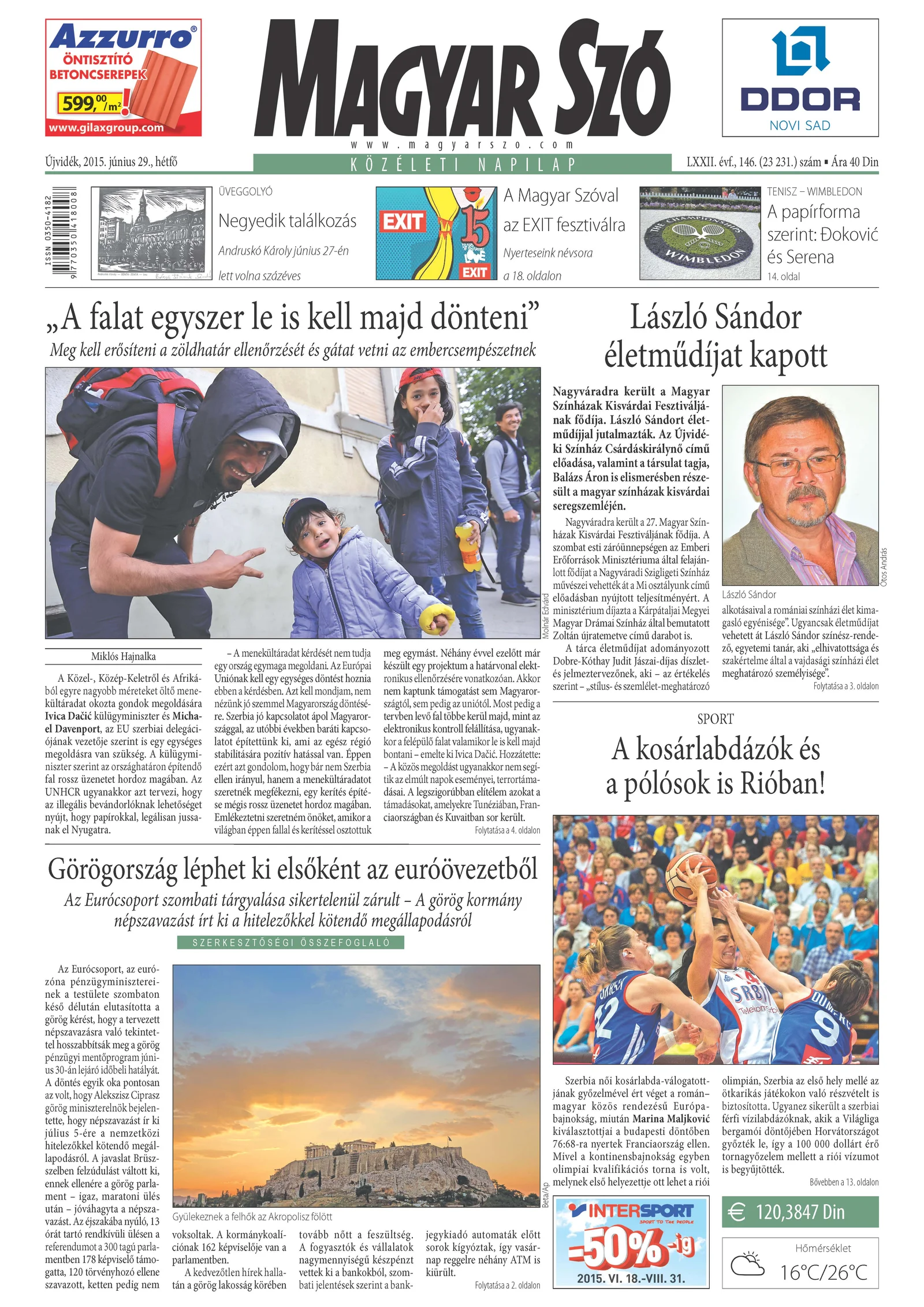 Magyar Szó, 72. évf. 2015. június 29. 146. sz. 1–20. oldal
