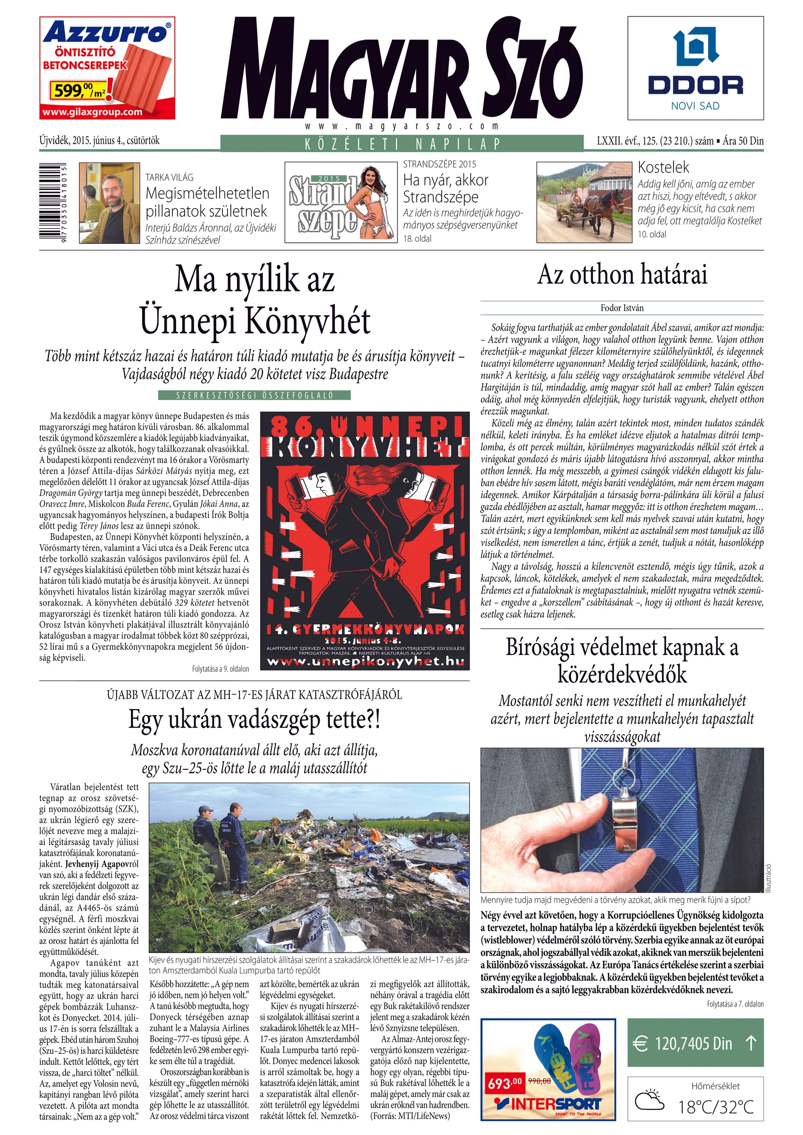Magyar Szó, 72. évf. 2015. június 4. 125. sz. 1–20. oldal