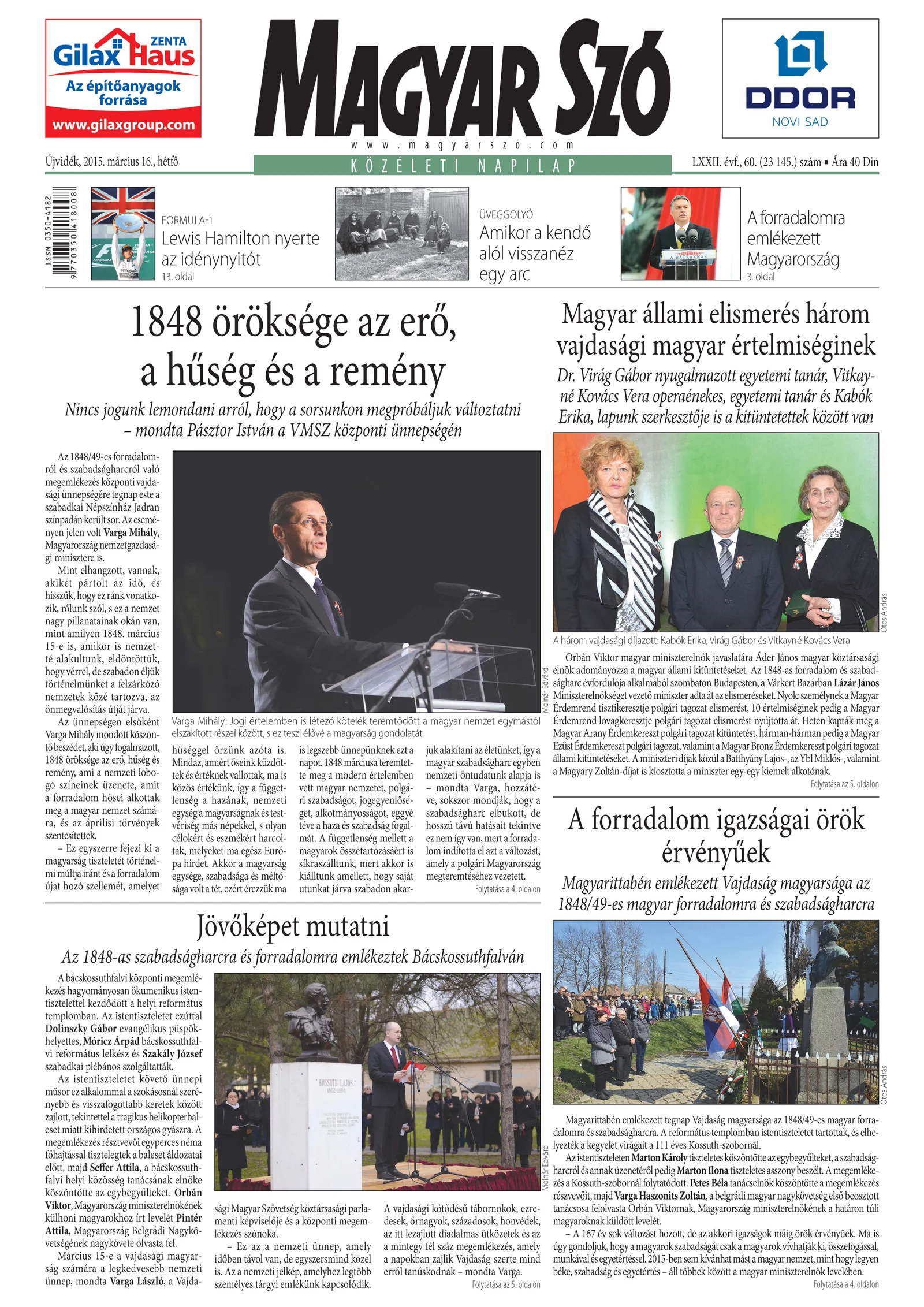 Magyar Szó, 72. évf. 2015. március 16. 60. sz. 1–20. oldal