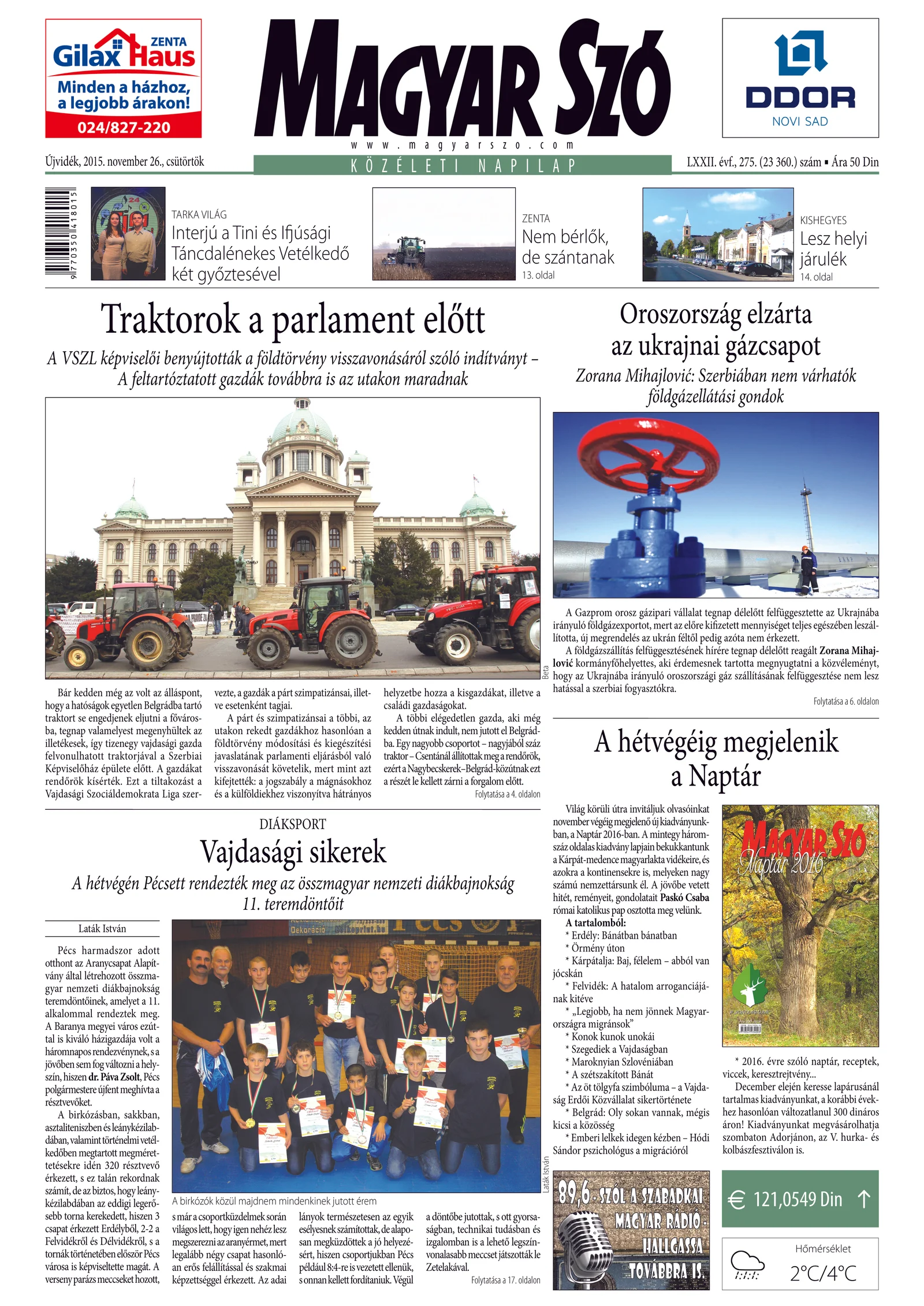 Magyar Szó, 72. évf. 2015. november 26. 275. sz. 1–20. oldal