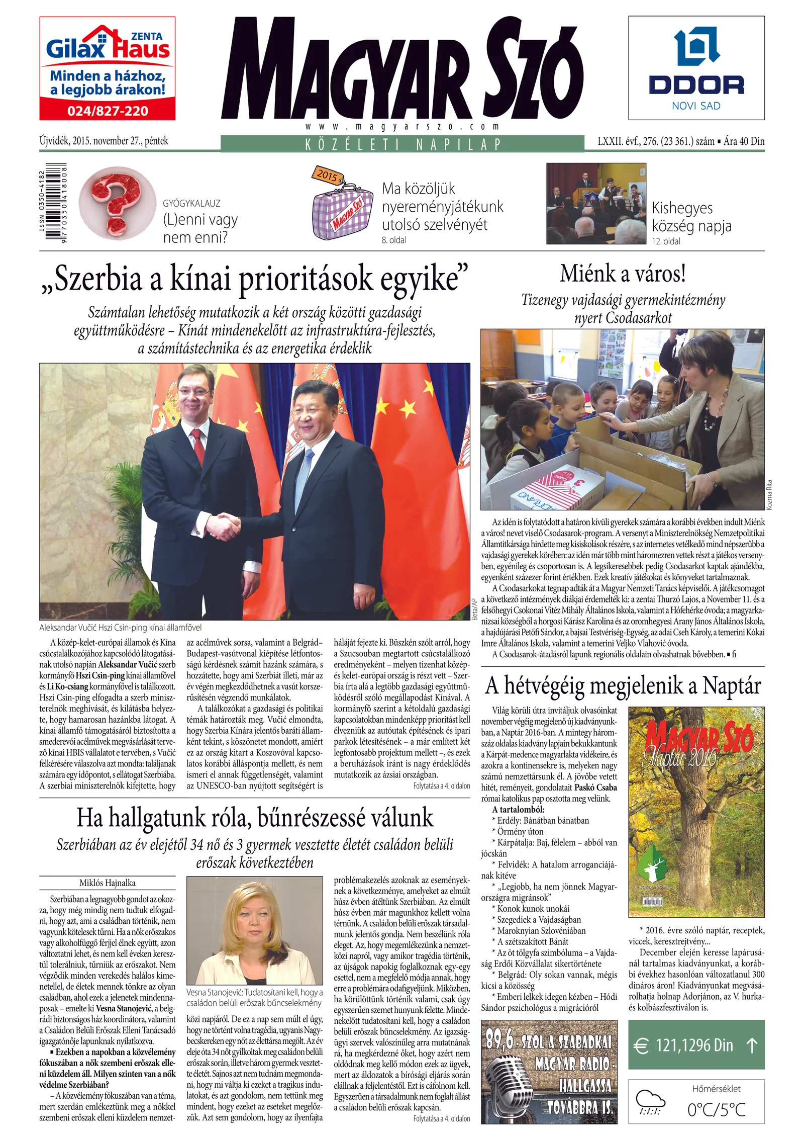 Magyar Szó, 72. évf. 2015. november 27. 276. sz. 1–16. oldal