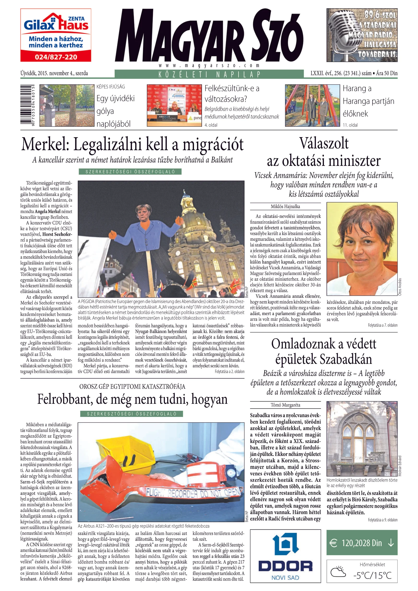 Magyar Szó, 72. évf. 2015. november 4. 256. sz. 1–16. oldal