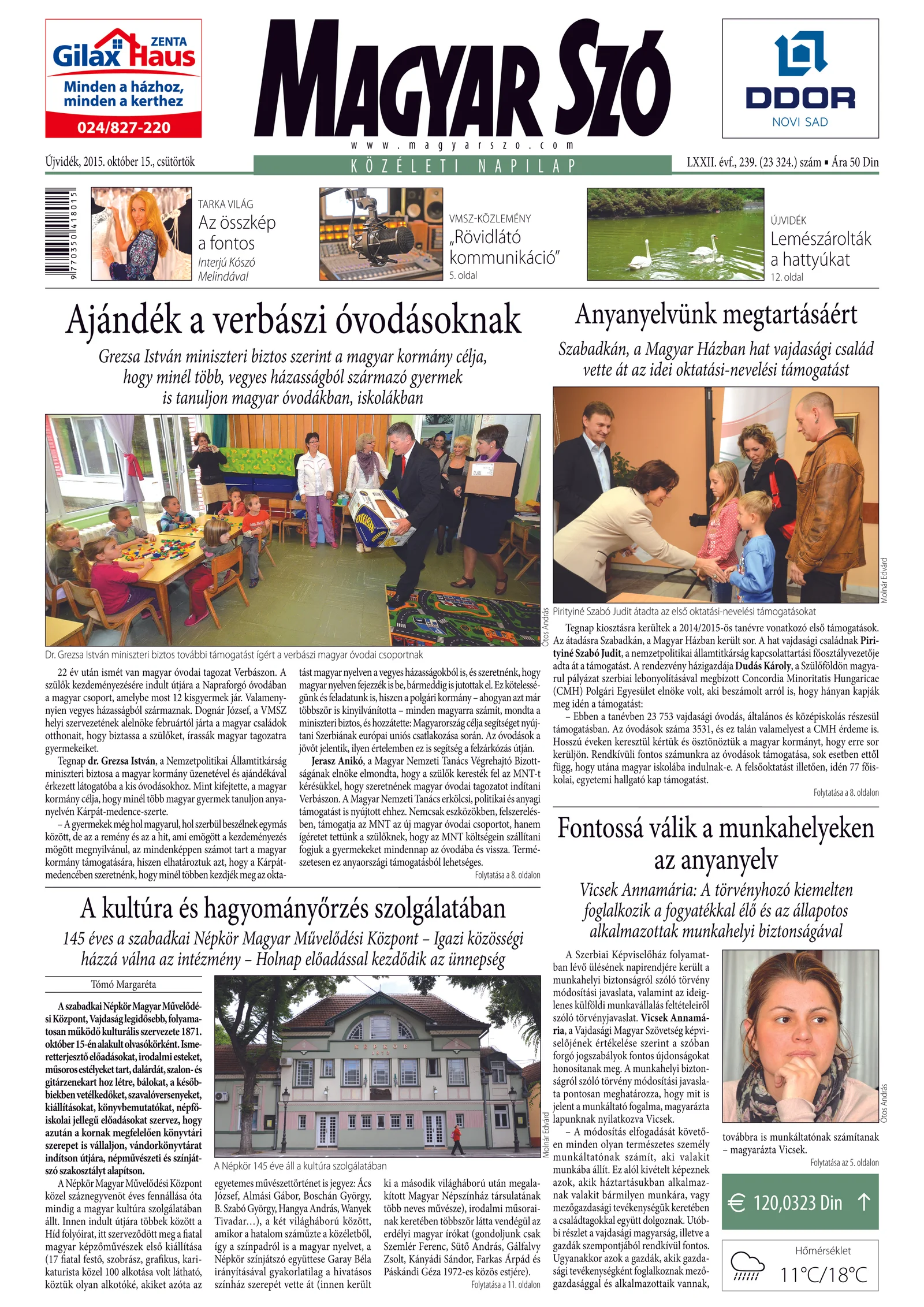 Magyar Szó, 72. évf. 2015. október 15. 239. sz. 1–20. oldal