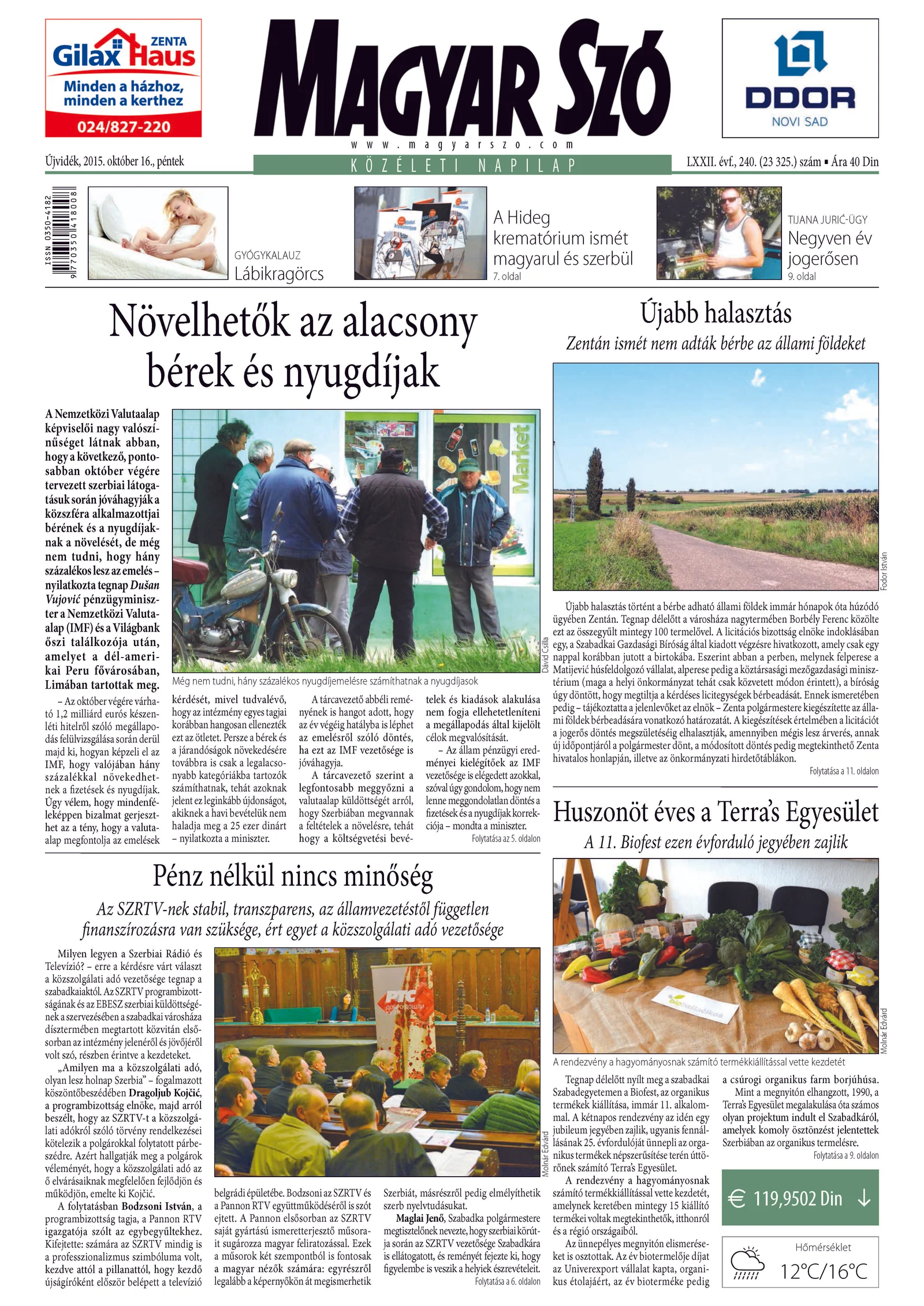 Magyar Szó, 72. évf. 2015. október 16. 240. sz. 1–16. oldal