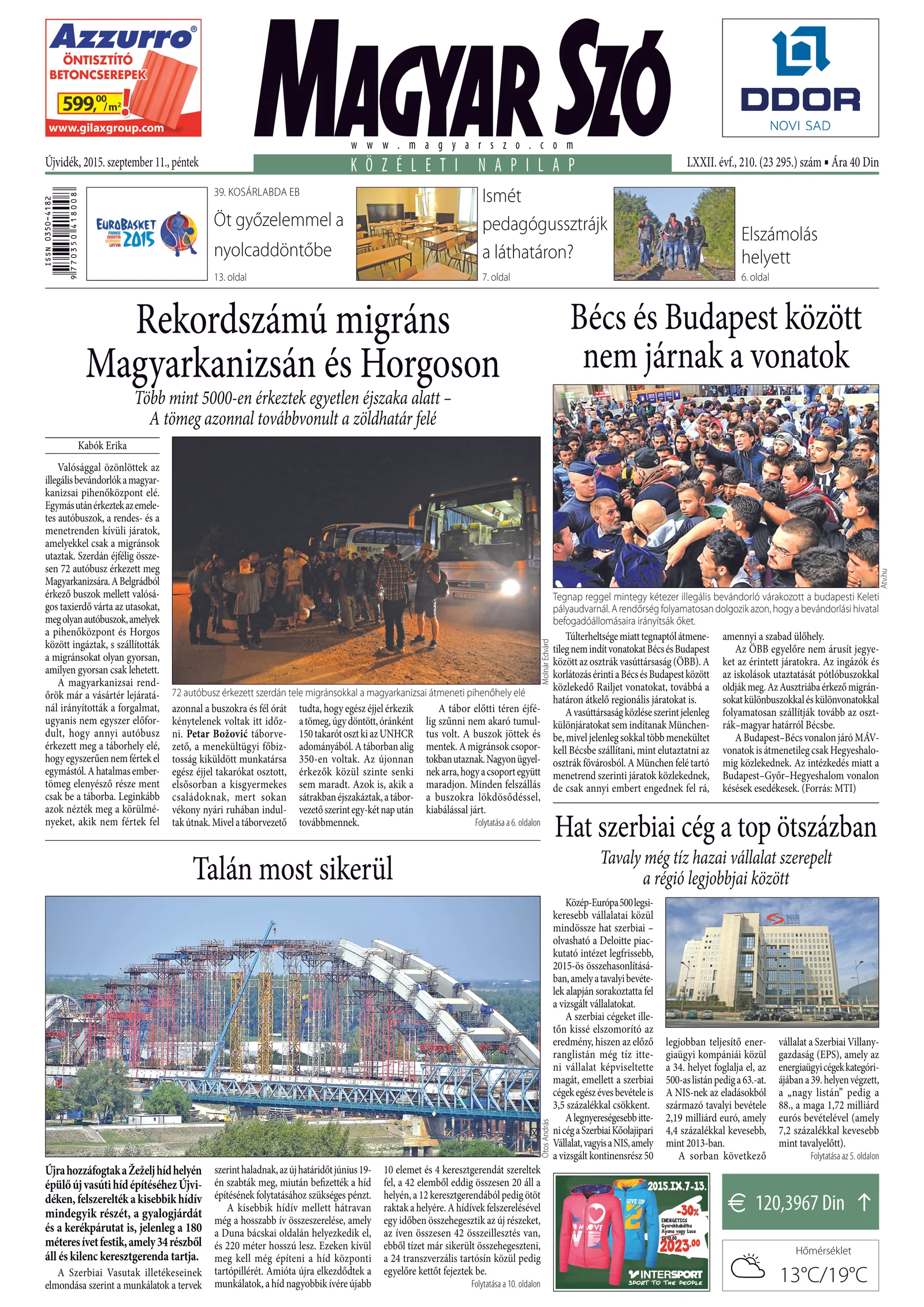 Magyar Szó, 72. évf. 2015. szeptember 11. 210. sz. 1–16. oldal