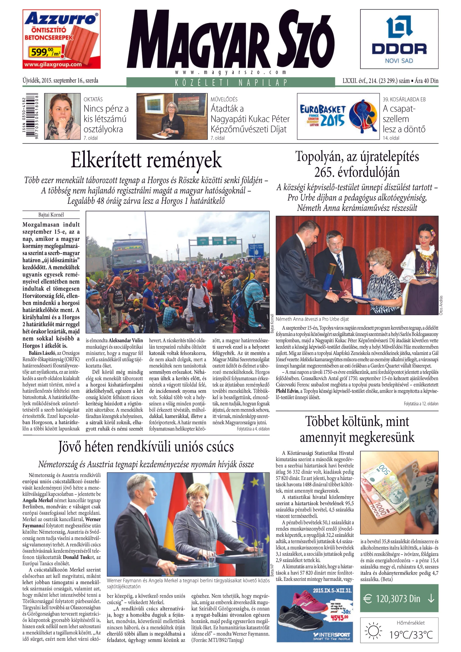 Magyar Szó, 72. évf. 2015. szeptember 16. 214. sz. 1–16. oldal