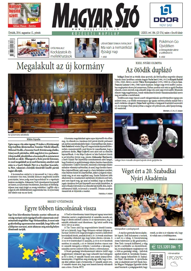 Magyar Szó, 73. évf. 2016. augusztus 12. 186. sz. 1–16. oldal