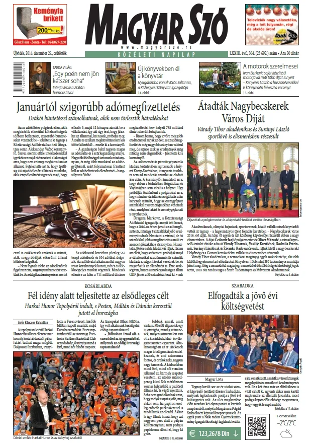 Magyar Szó, 73. évf. 2016. december 29. 304. sz. 1–20. oldal