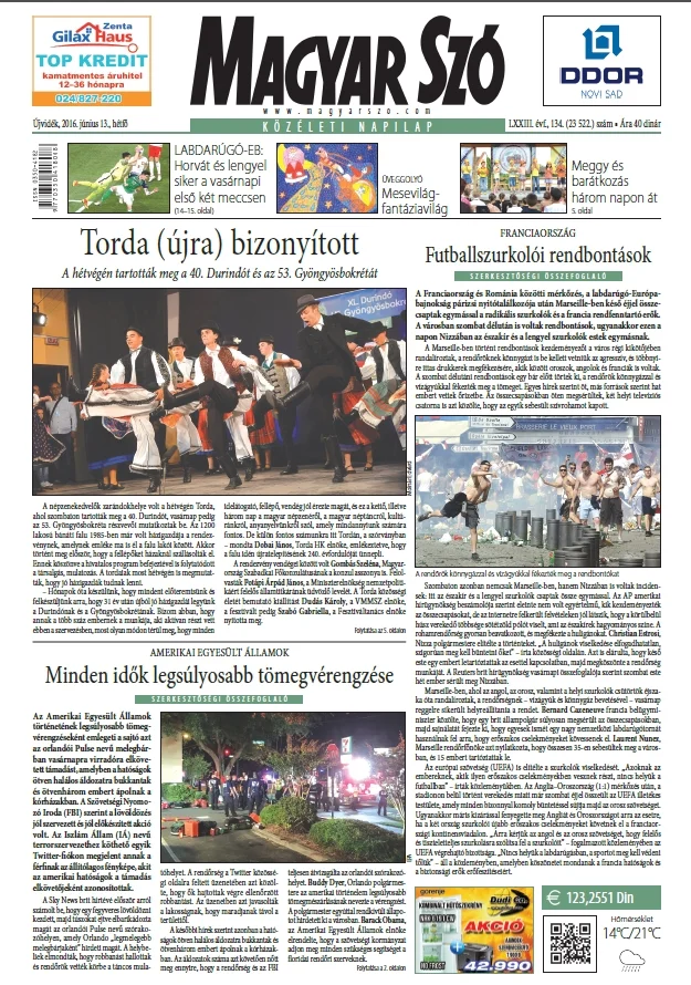 Magyar Szó, 73. évf. 2016. június 13. 134. sz. 1–20. oldal