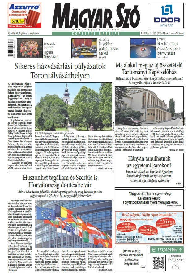 Magyar Szó, 73. évf. 2016. június 2. 125. sz. 1–20. oldal